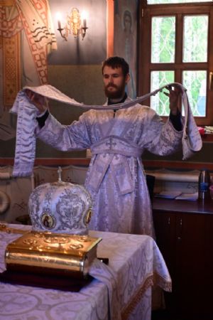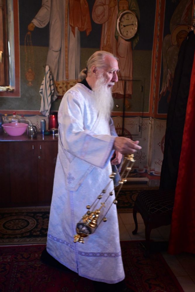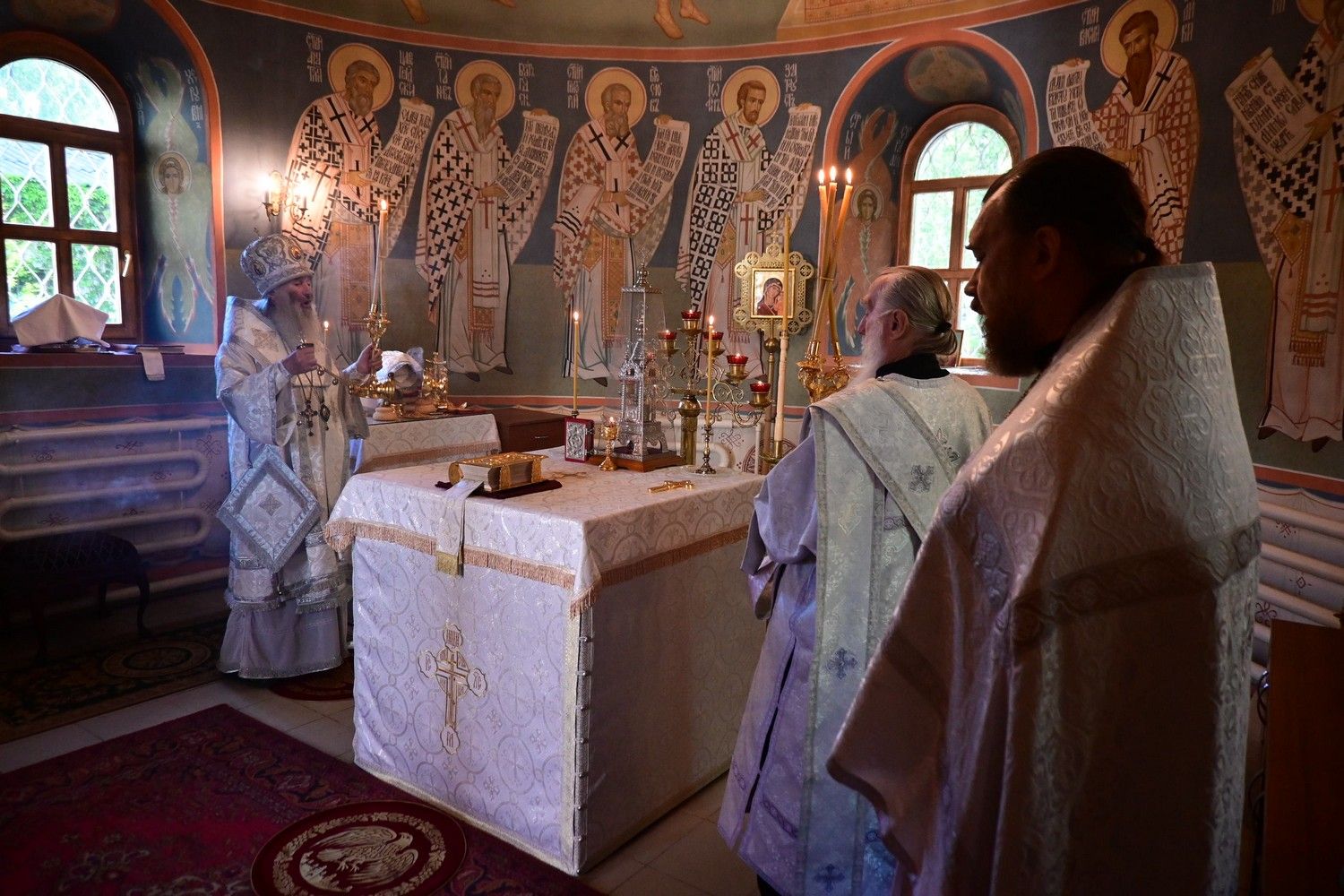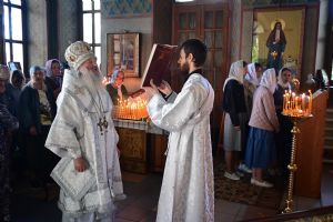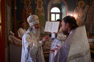 Владыке сослужили ключарь храма Рождества Пресвятой Богородицы с. Семеновка протоиерей Михаил Ильин и протодиакон Михаил Козловский. Песнопения исполнял малый состав детско-юношеского хора «Благовест» под управлением Ксении Букуровой.