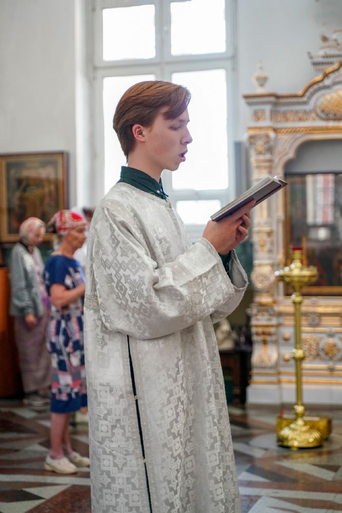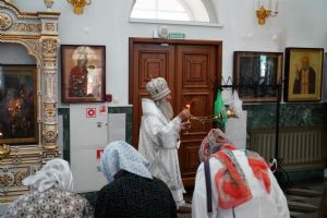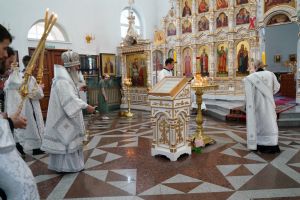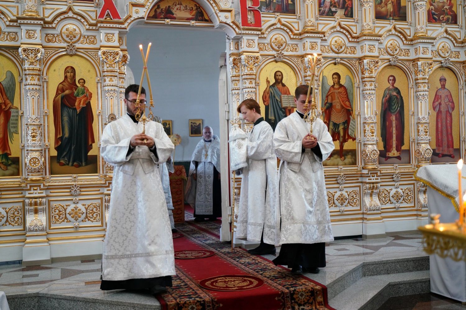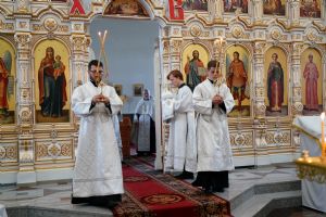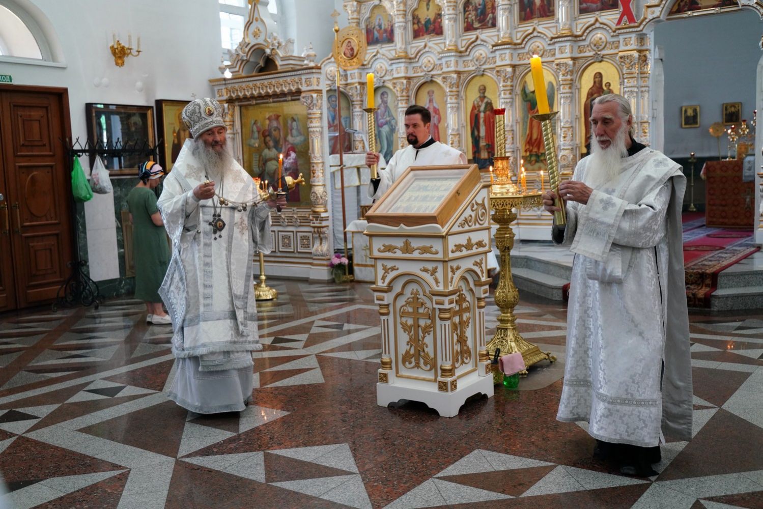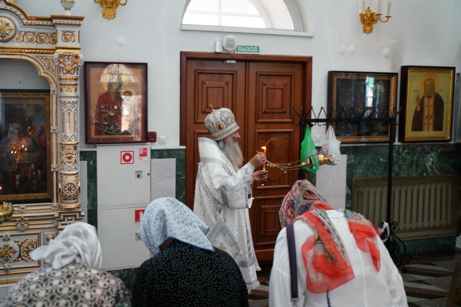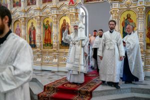 Владыке сослужили клирики собора иерей Леонид Вылекжанин, иерей Димитрий Лукьянов и диакон Алексий Кузнецов, а также настоятель Сретенского храма с. Русский Кадам иерей Владимир Каплунов и протодиакон Михаил Козловский. Песнопения исполнял хор под управлением Елены Поглазовой.