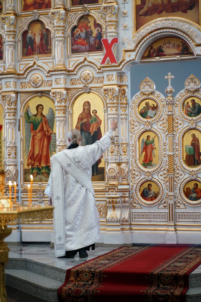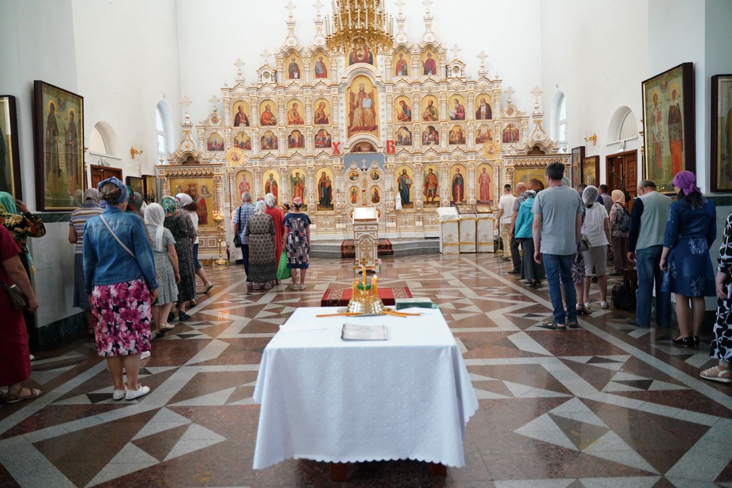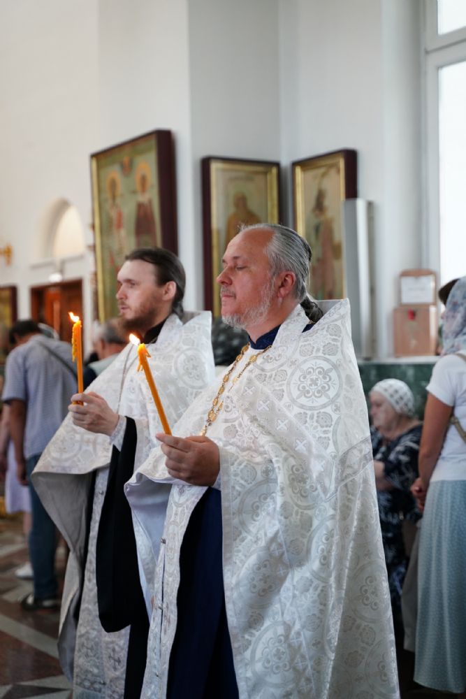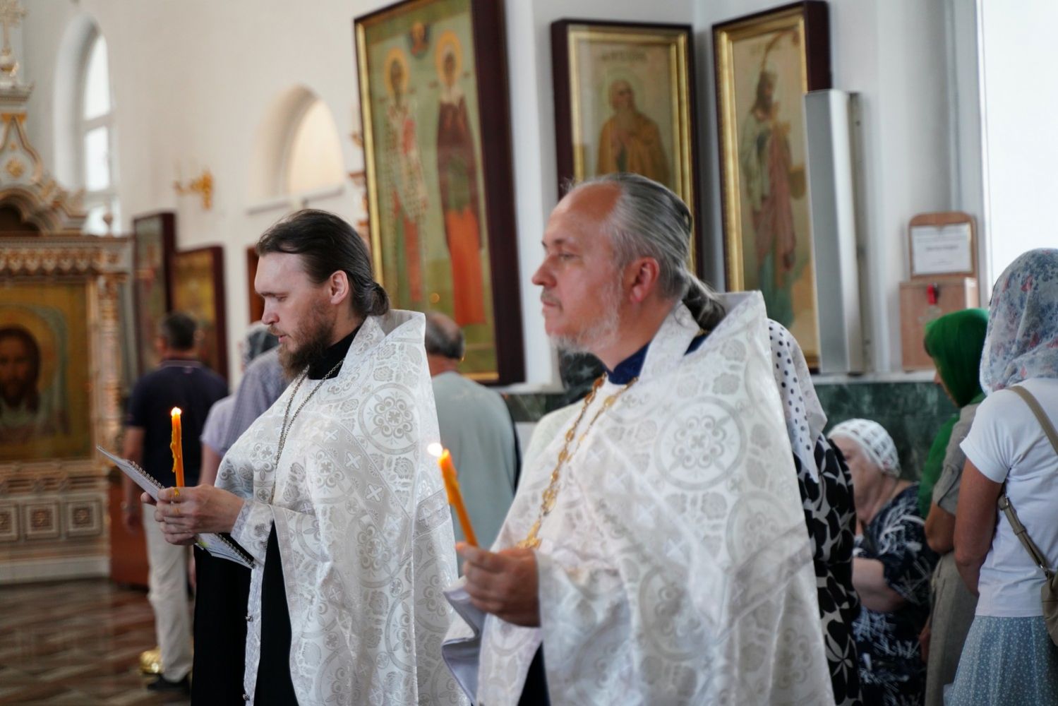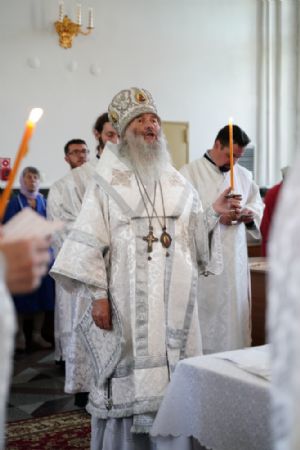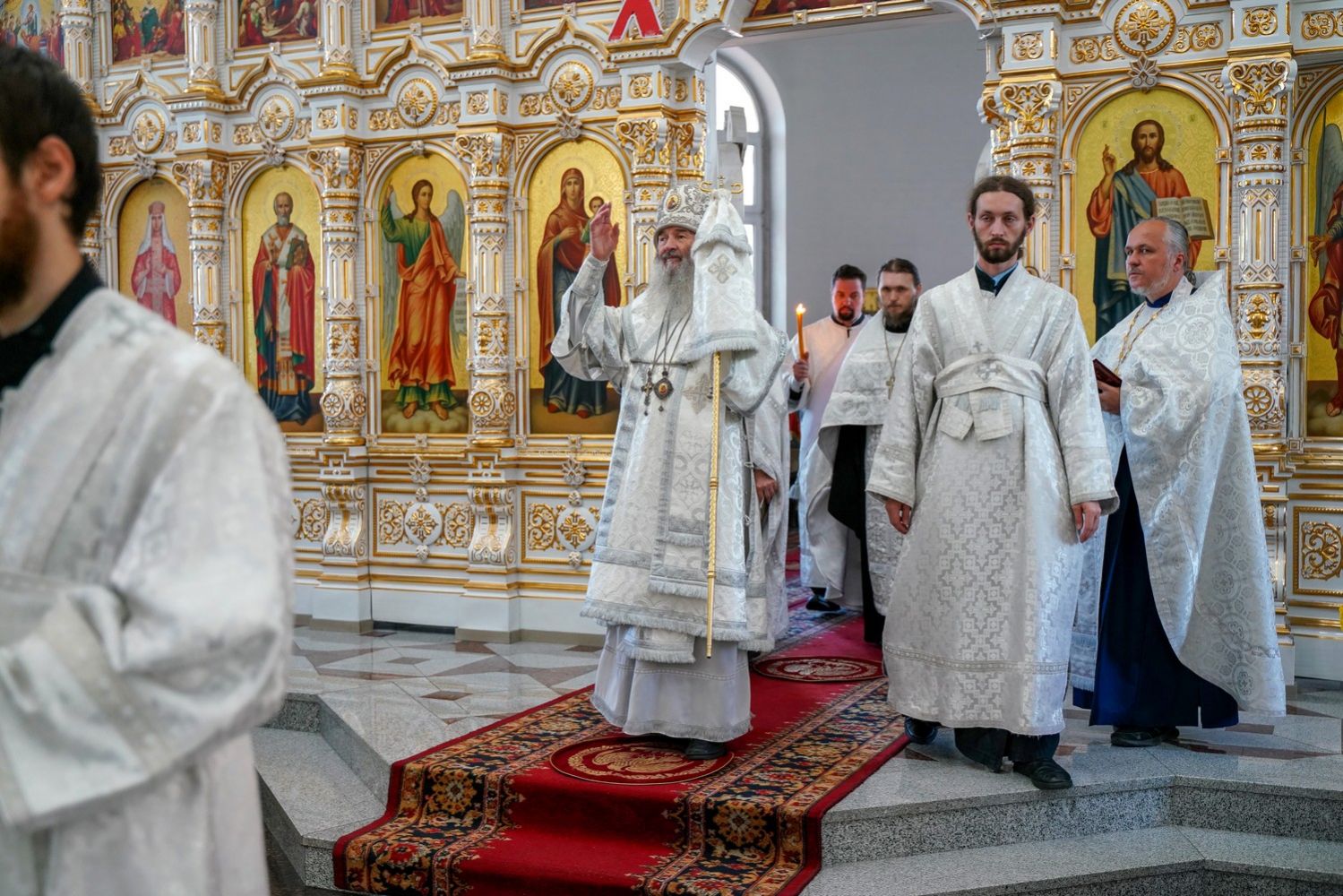 Владыке сослужили клирики собора иерей Леонид Вылекжанин, иерей Димитрий Лукьянов и диакон Алексий Кузнецов, а также настоятель Сретенского храма с. Русский Кадам иерей Владимир Каплунов и протодиакон Михаил Козловский. Песнопения исполнял хор под управлением Елены Поглазовой.