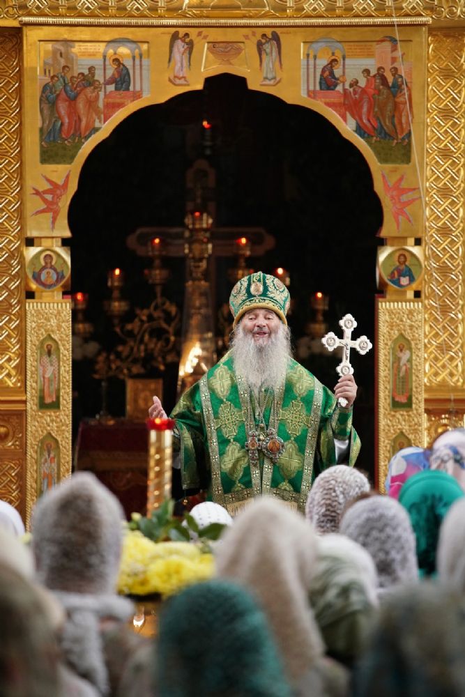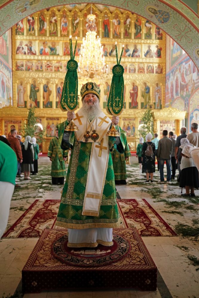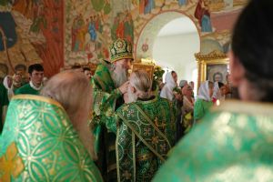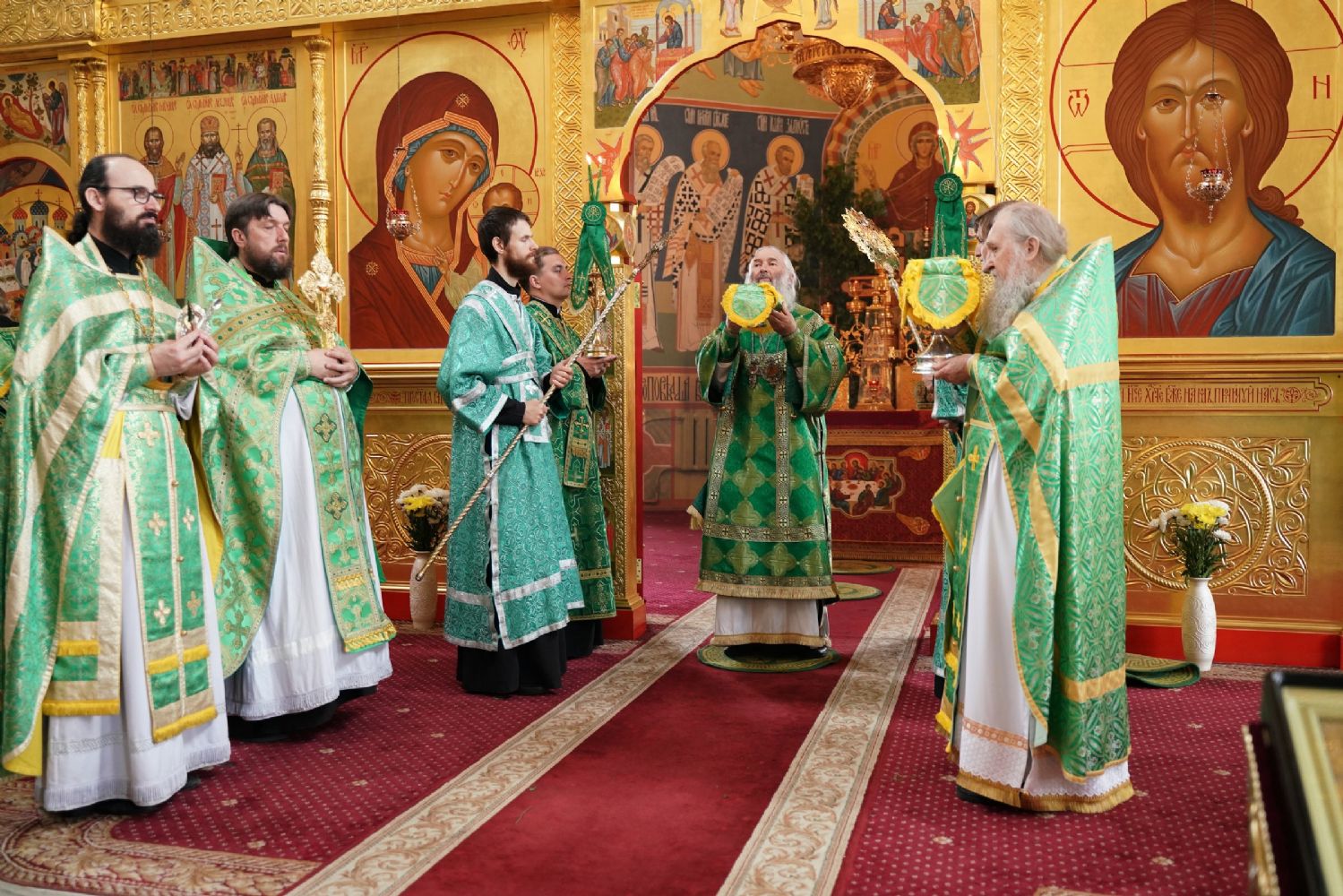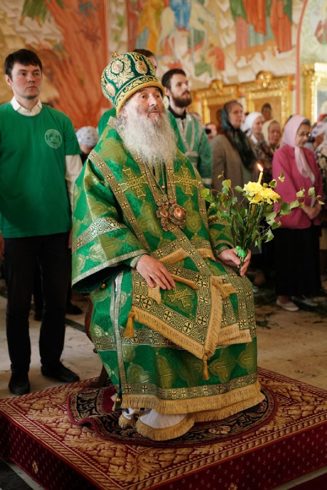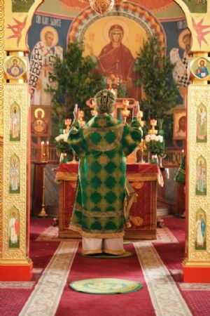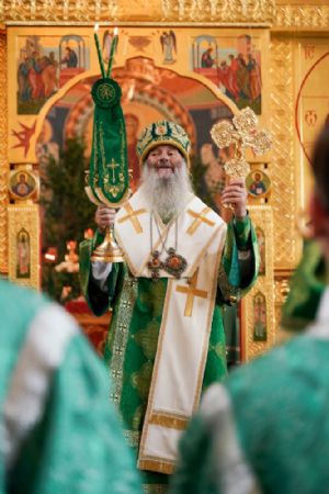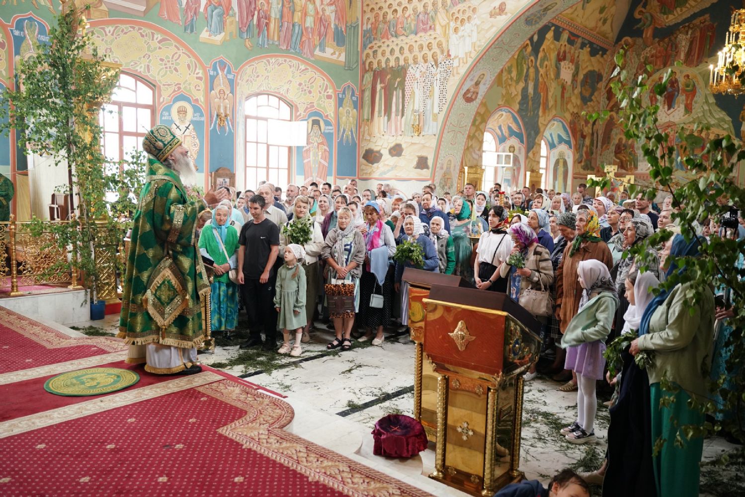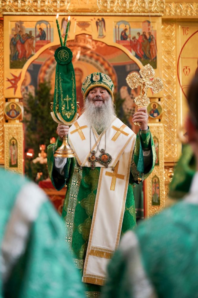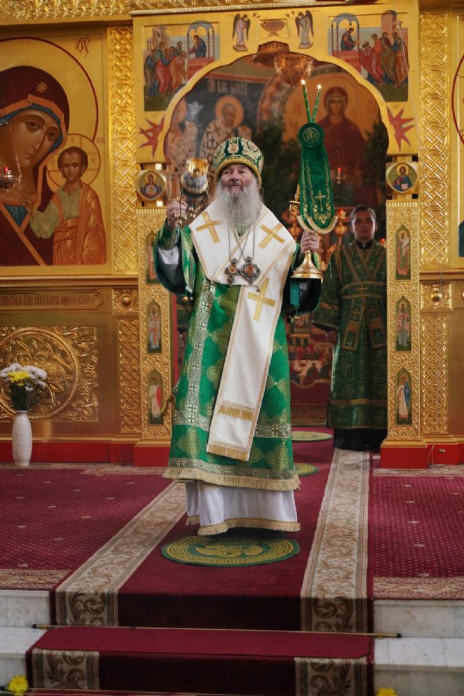 «Сегодня в духовной радости и ликовании вся полнота церковная прославляла Творца всяческих Бога Троицу – Отца и Сына и Святого Духа. Поистине этот день открывает для нас великую благодатную милость Господа, сподобляющего каждого человека умом прозревать тайну Божественную, а сердцем своим воспринимать Духа Святого, Который сегодня излился на всех людей. Подобно тому, как в день Пятидесятницы Он излился на апостолов в Сионской горнице, так и сегодня все храмы стали Сионскими горницами, и Святой Дух изливался в той же благодати и силе на всех нас, – подчеркнул владыка.