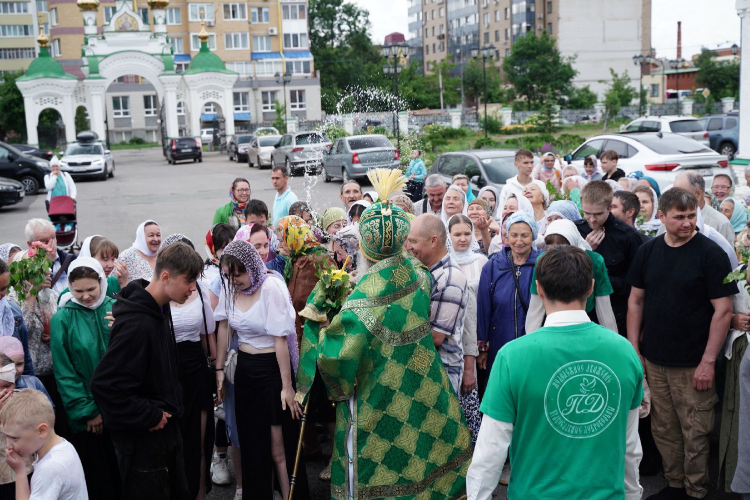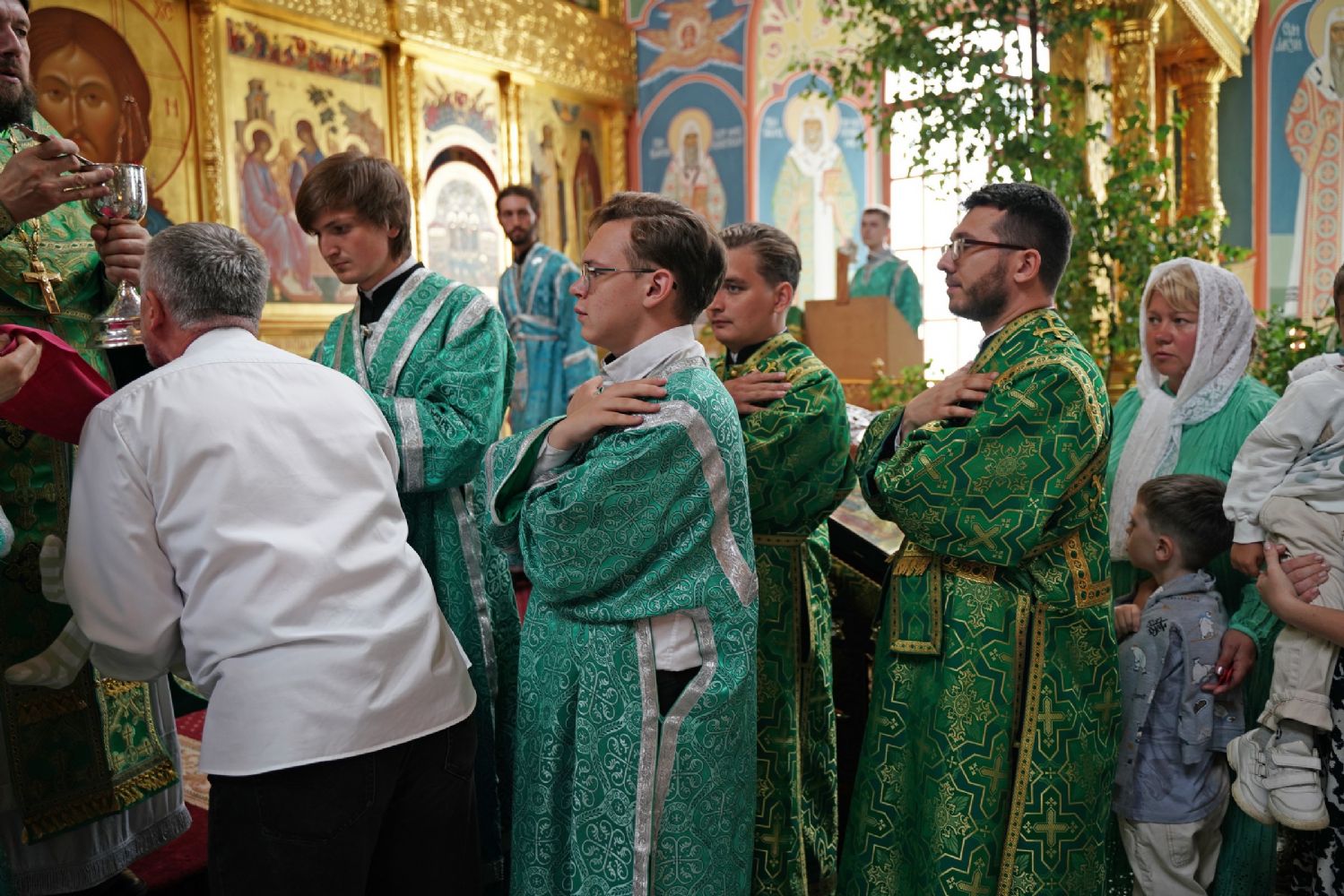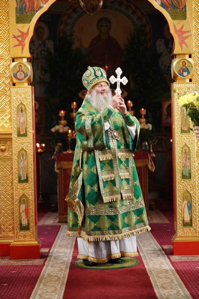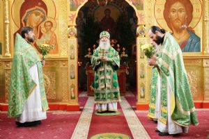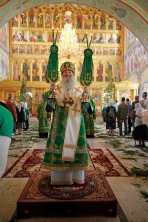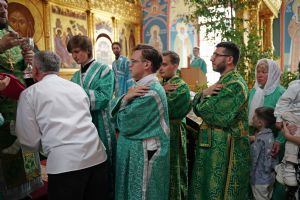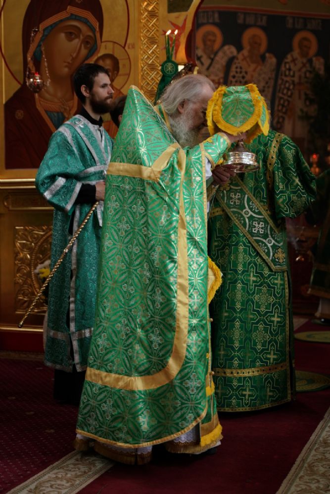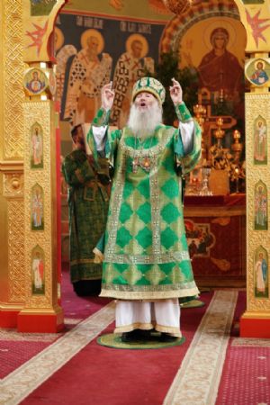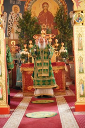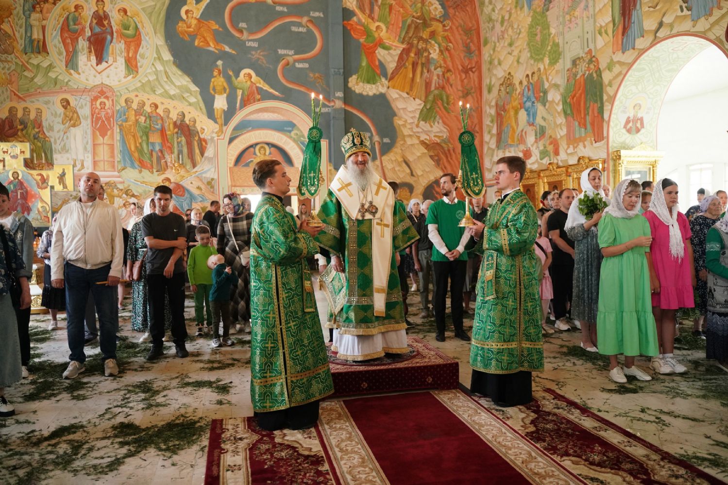 «Сегодня в духовной радости и ликовании вся полнота церковная прославляла Творца всяческих Бога Троицу – Отца и Сына и Святого Духа. Поистине этот день открывает для нас великую благодатную милость Господа, сподобляющего каждого человека умом прозревать тайну Божественную, а сердцем своим воспринимать Духа Святого, Который сегодня излился на всех людей. Подобно тому, как в день Пятидесятницы Он излился на апостолов в Сионской горнице, так и сегодня все храмы стали Сионскими горницами, и Святой Дух изливался в той же благодати и силе на всех нас, – подчеркнул владыка.