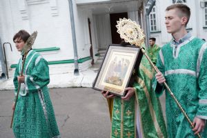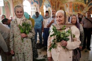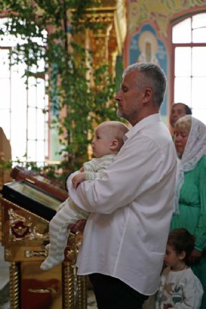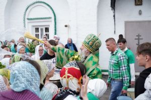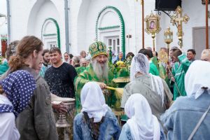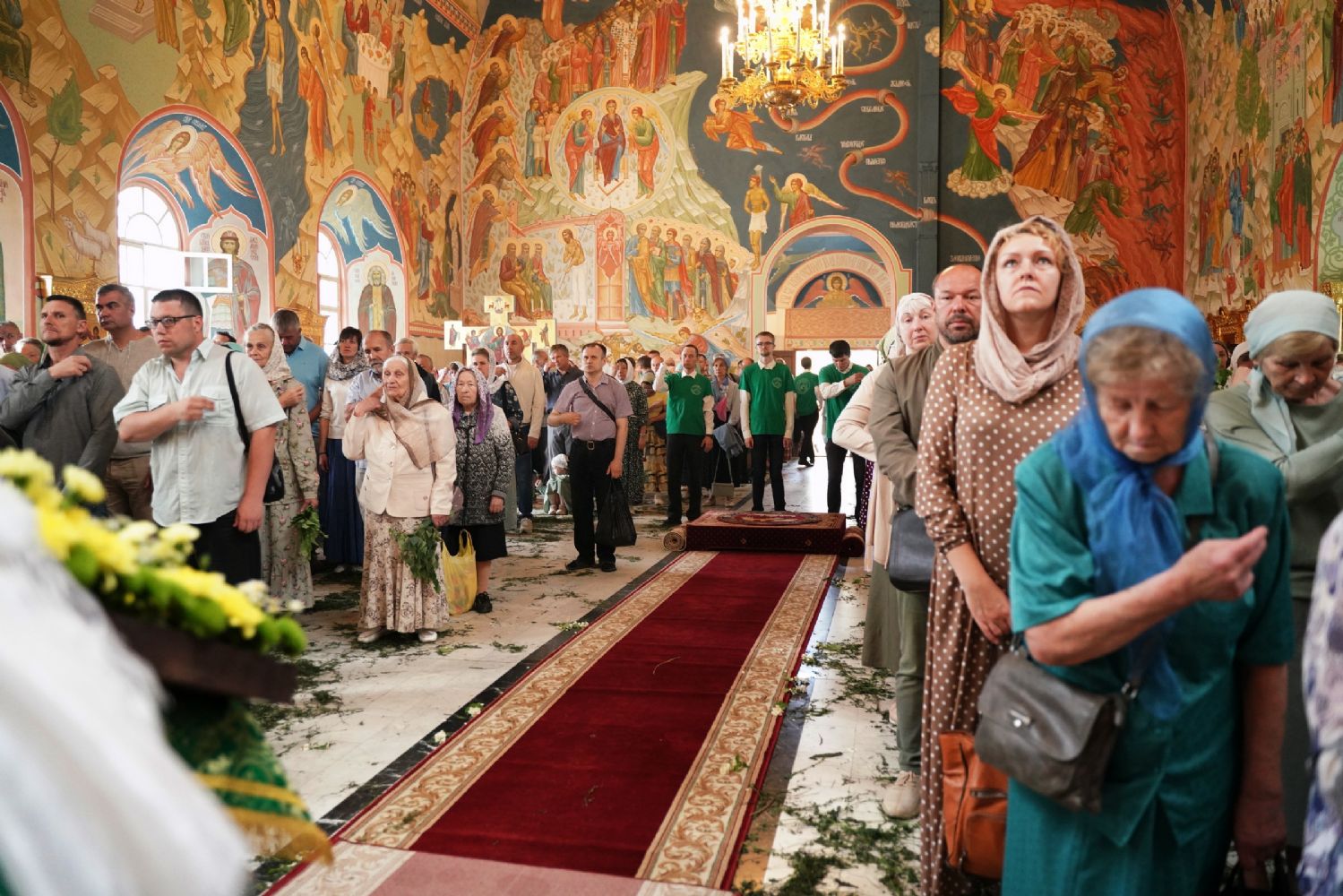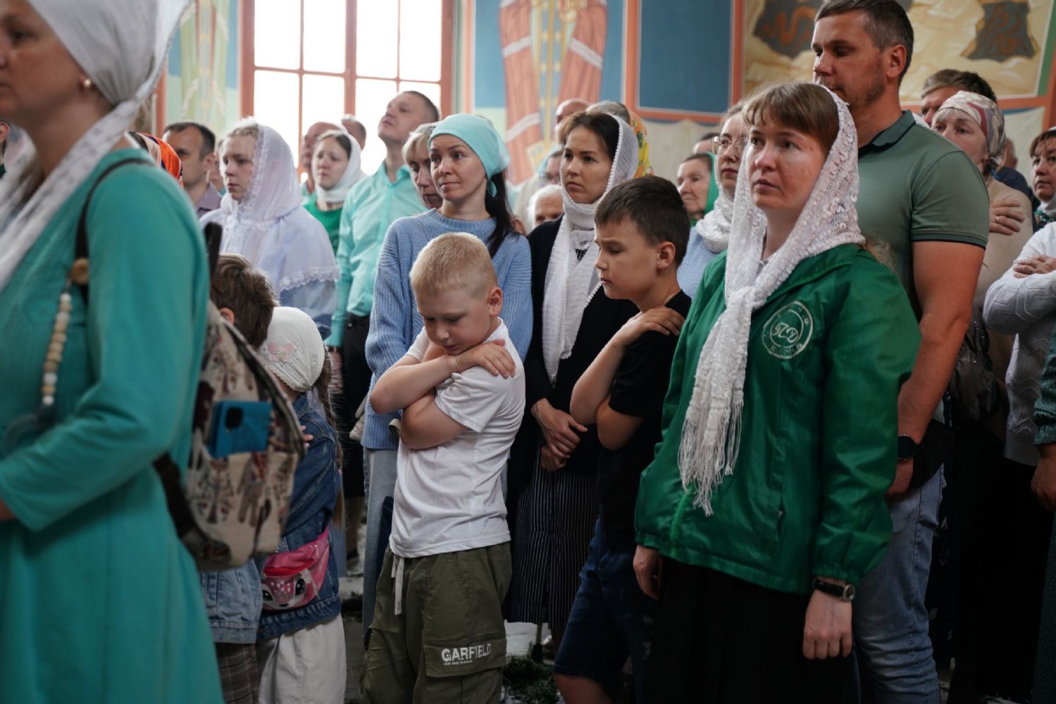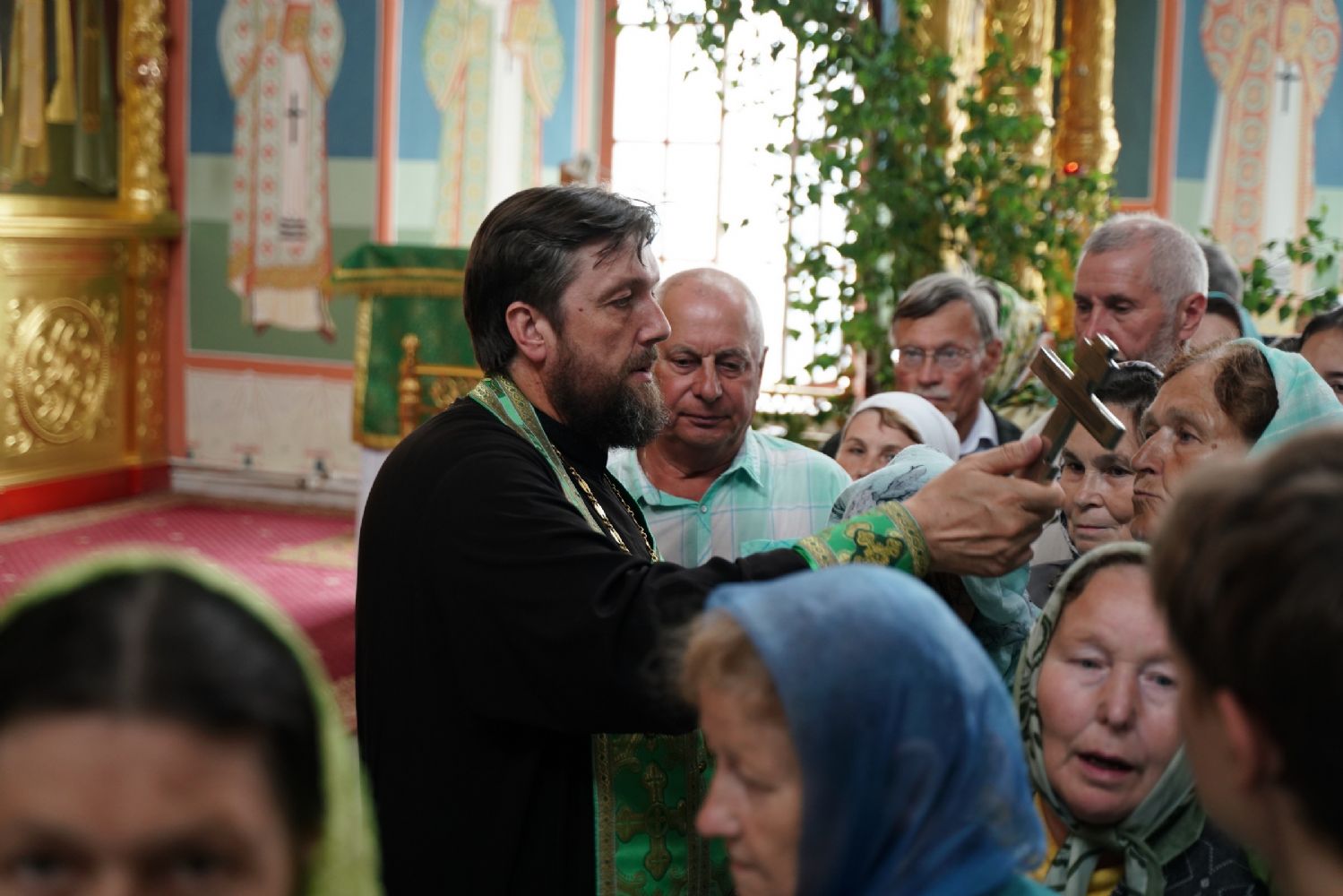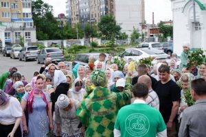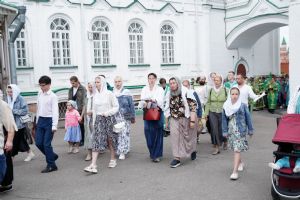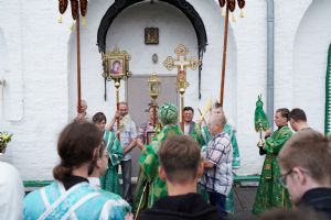 После Литургии была отслужена великая вечерня с коленопреклоненными молитвами. Затем, по традиции престольных праздников, прошел крестный ход вокруг храма, владыка щедро окропил всех святой водой.
