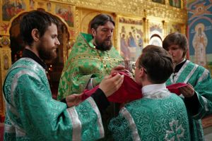 Его Высокопреосвященству сослужили настоятель храма протоиерей Евгений Кутырев, благочинный Йошкар-Олинского церковного округа протоиерей Андрей Норкин, клирик Вознесенского собора иерей Иоанн Кристев и протодиакон Михаил Козловский. Песнопения исполнял хор храма под руководством регента Анны Ярошевич.