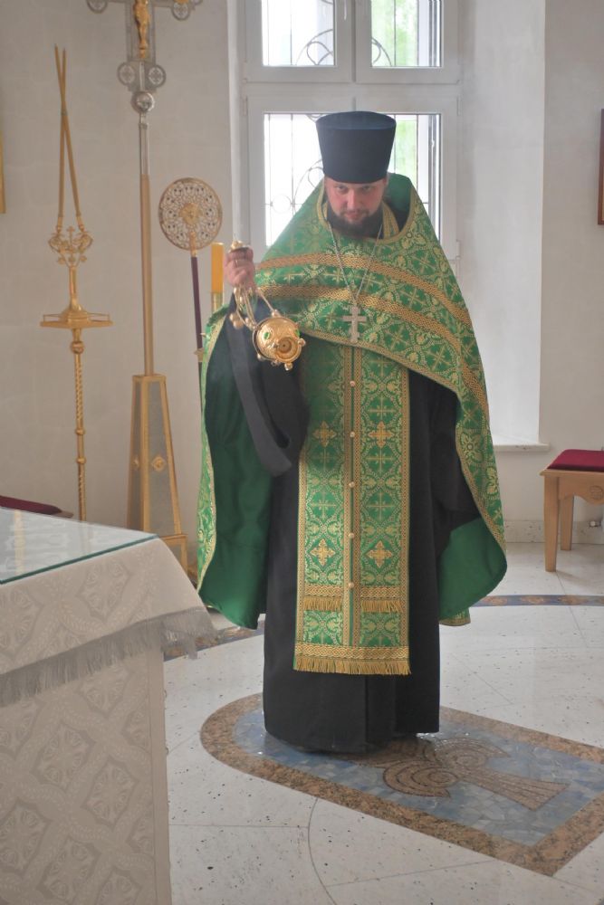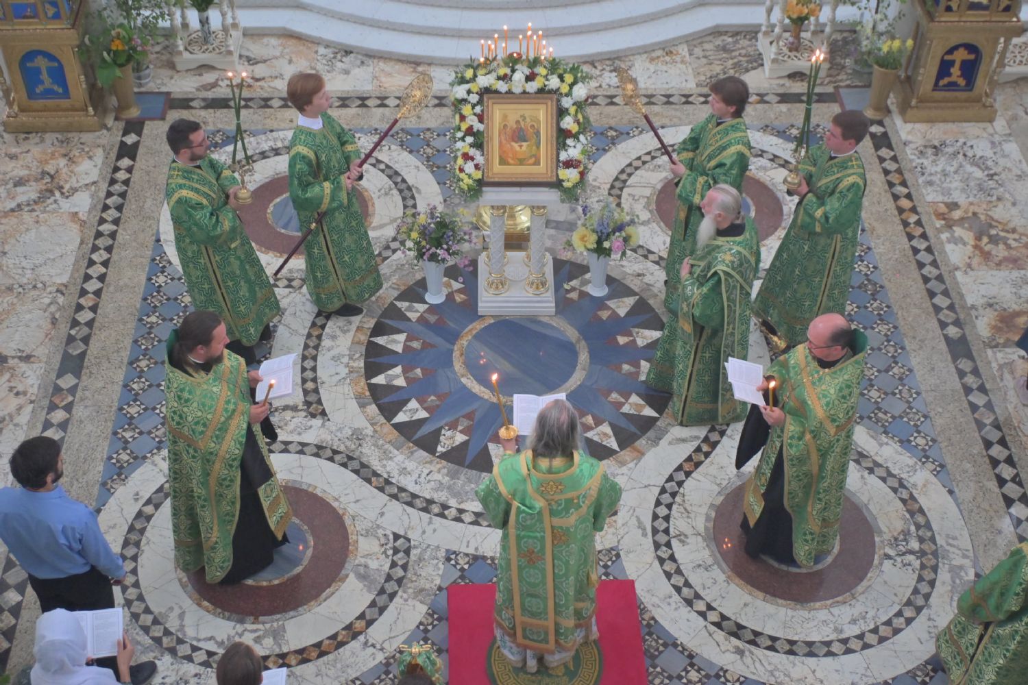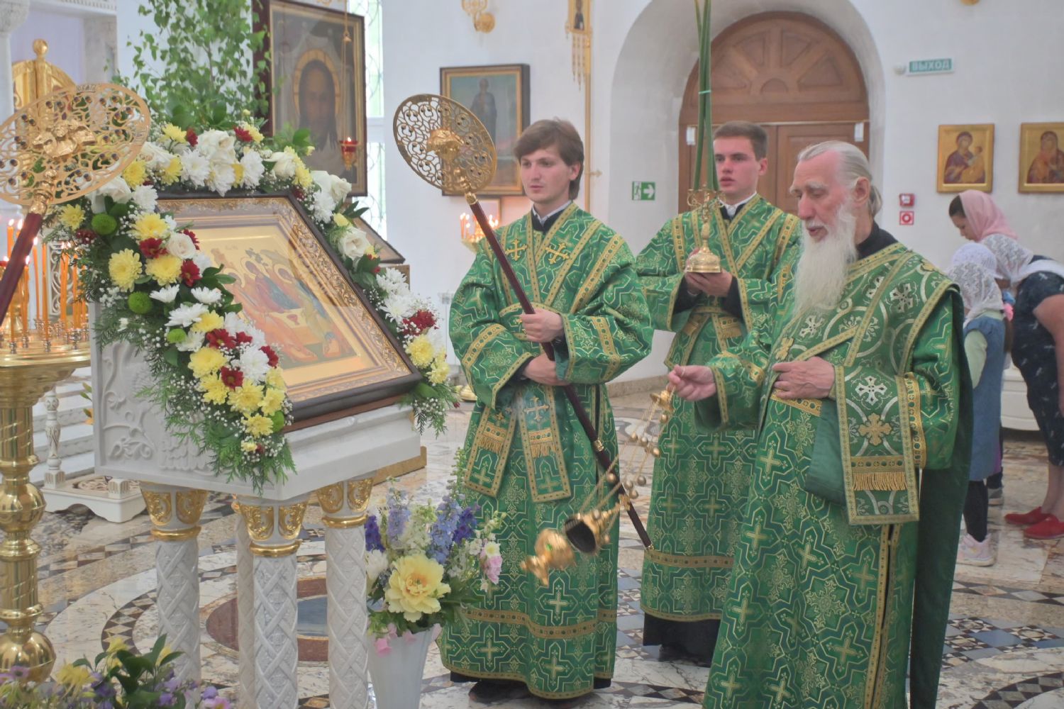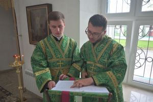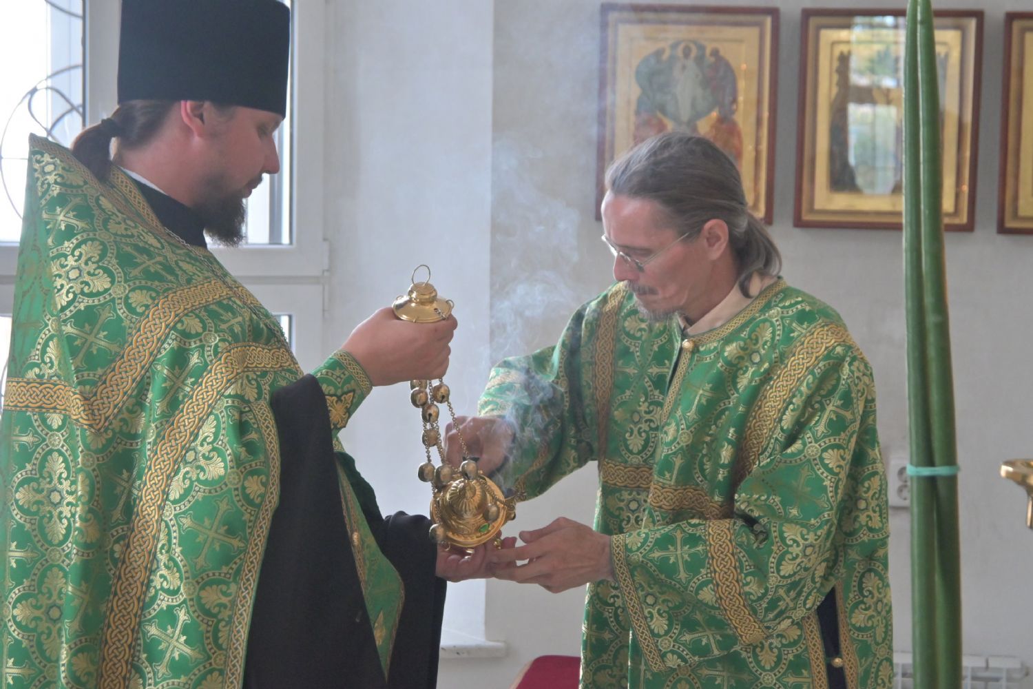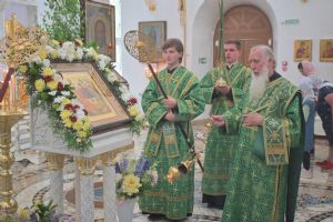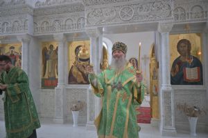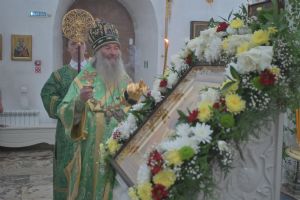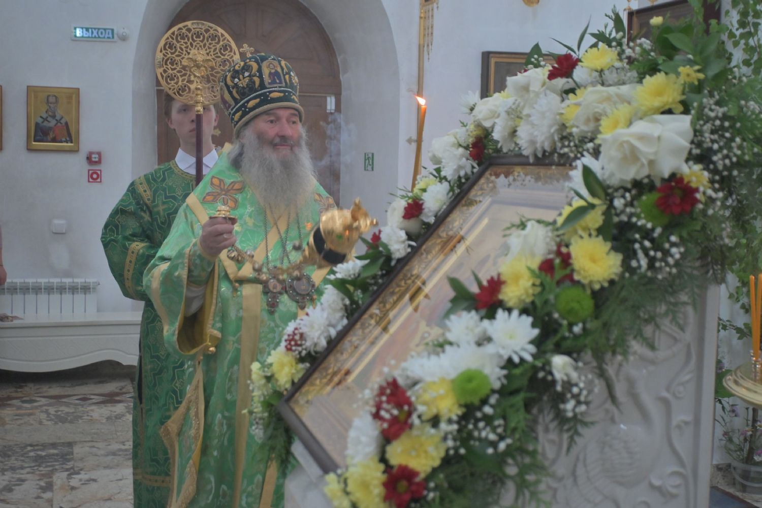 Архипастырю сослужили настоятель храма иерей Алексий Михеев, клирик храма иерей Игорь Коваль и протодиакон Михаил Козловский.