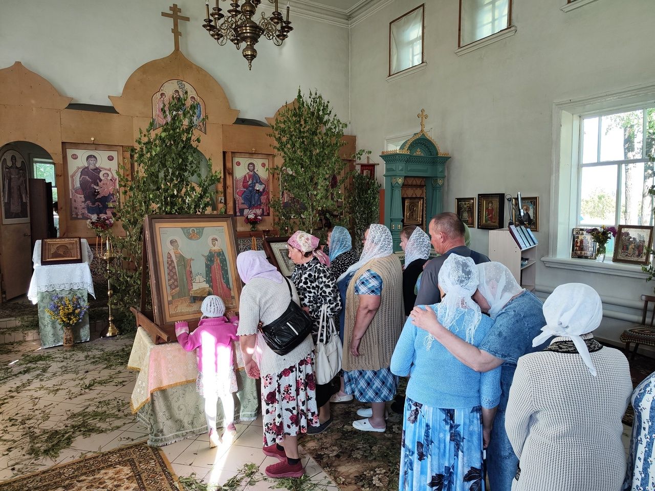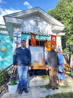 21 июня в храме в честь Казанской иконы Богородицы с. Старый Торъял Новоторъяльского района, куда накануне крестным ходом были принесены Седмиезерная икона Божией Матери и икона святых благоверных князей Петра и Февронии, была совершена Божественная литургия.