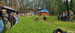На протяжении 10 дней учащиеся воскресных школ Йошкар-Олы со своими родителями, бабушками и дедушками отдыхали в невероятном по красоте уголке нашего края. В этом году к любимым видам деятельности поселенцев – спортивным играм на свежем воздухе, купанию в озере, походам в лес и т.п. – добавились еще и занятия в рамках военно-патриотического воспитания. Огневая и строевая подготовка, обучение приемам первой медицинской помощи, работа с туристическим инвентарем не оставляли времени для скуки. И все это при строгой, почти военной дисциплине. И ничего, что младшие участники смены еще не ходят в школу. Ведь теплые, почти семейные отношения внутри поселения, совместная молитва, добрые песни у костра сделали эти дни для всех, кто их пережил вместе с друзьями на берегу лесного озера, радостными и светлыми.