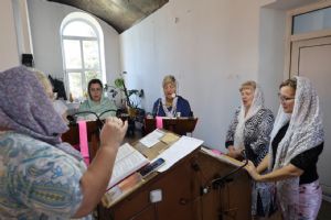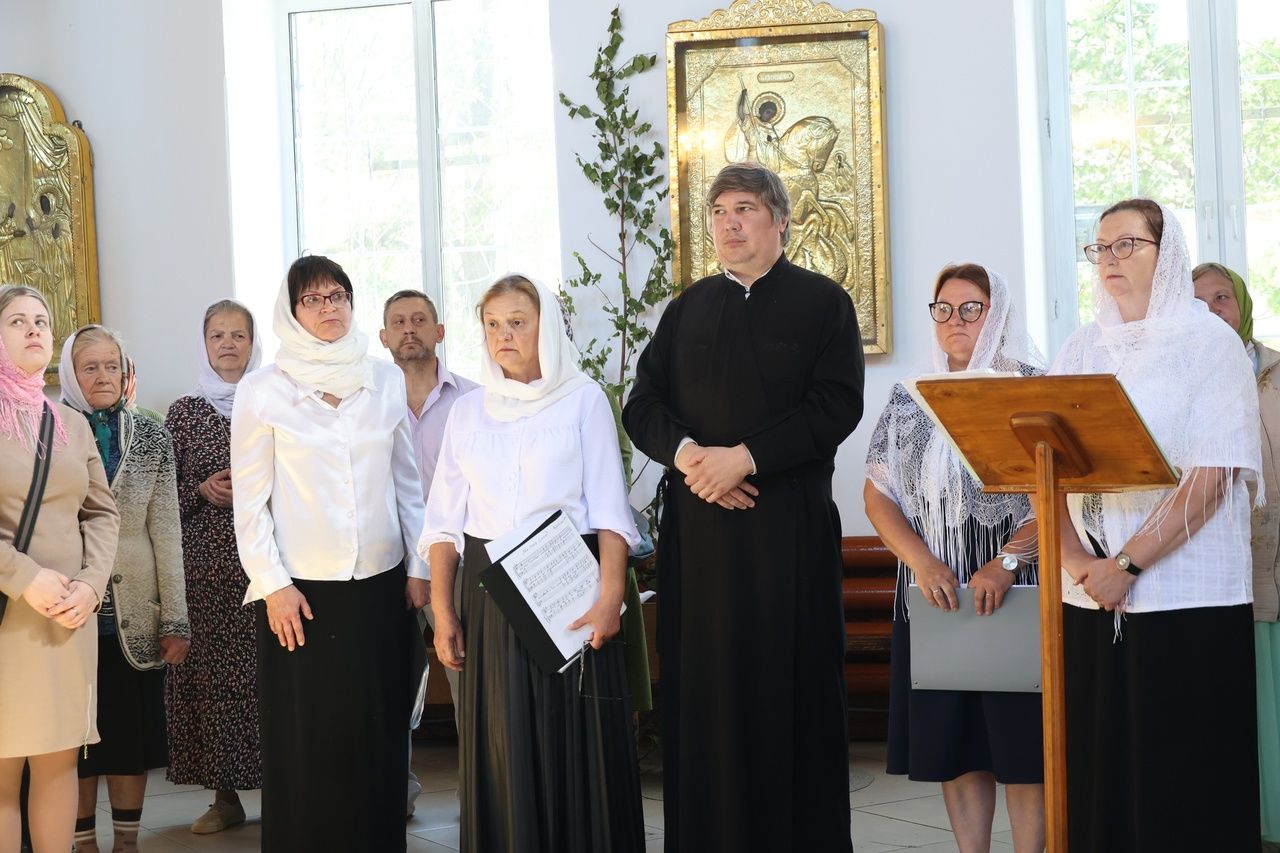 Его Преосвященству сослужили священнослужители Волжской епархии. За богослужением пели три хора: архиерейский хор под управлением Любови Михеевой, хор собора под управлением Елены Васильевой, народный хор под управлением Евгения Чигарова.