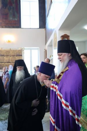 По окончании Литургии владыка обратился к собравшимся с архипастырским словом, рассказав о перенесении мощей святителя Феофана Затворника из села Эммануиловка в Свято-Успенский Вышенский монастырь, где святитель в XIX веке провел в затворе, в молитве и духовных трудах, 28 лет. Перенесение его мощей совершилось в Рязанской митрополии 29 июня 2002 года. Возглавил торжество Патриарх Московский и всея Руси Алексий II.