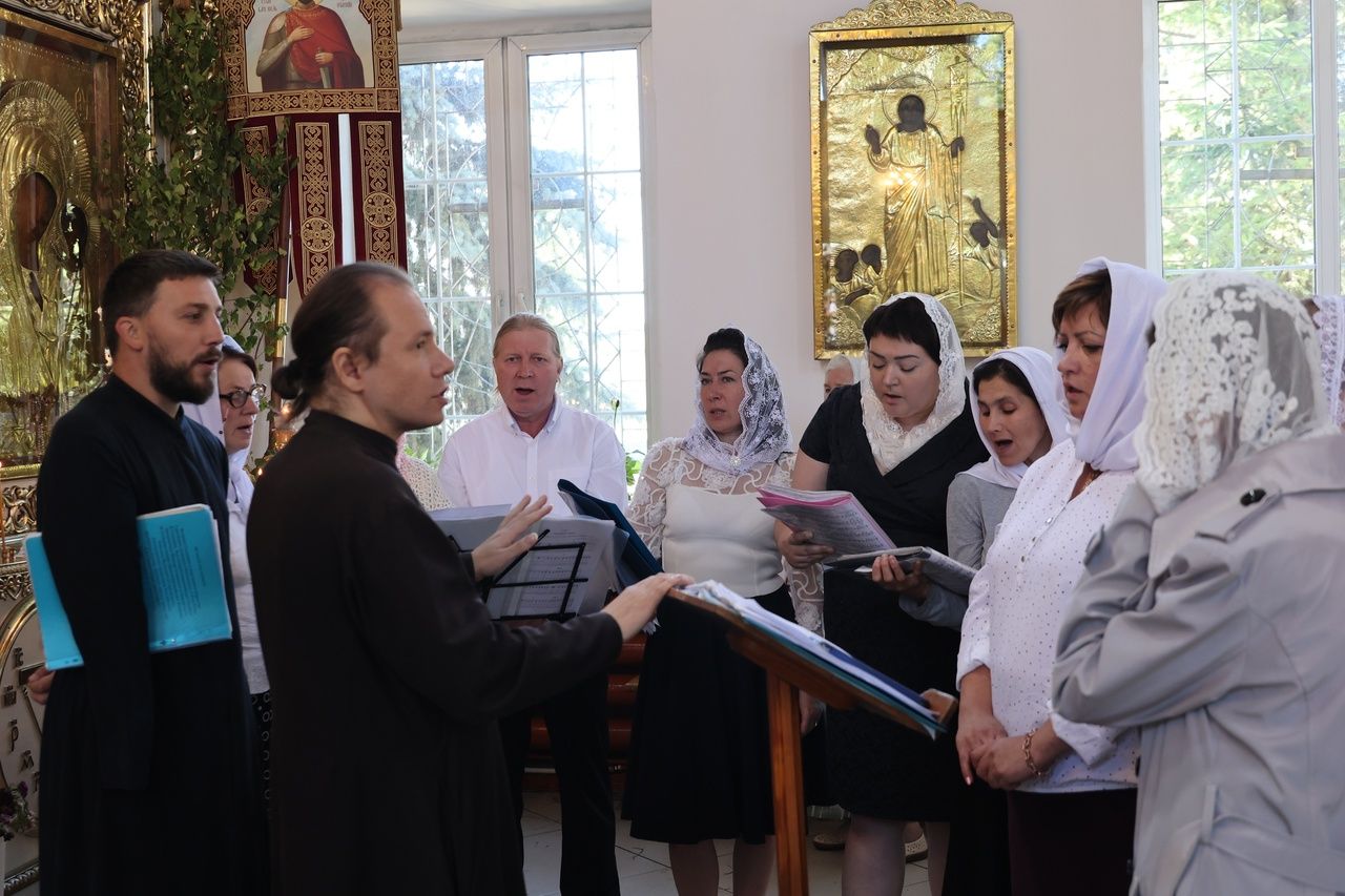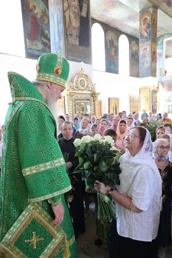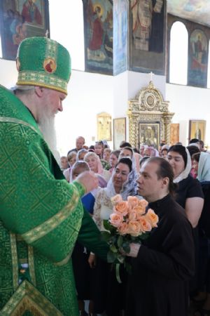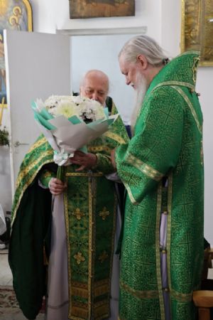 В завершение богослужения духовенство, сотрудники епархии и прихожане поздравили владыку Феофана с днем тезоименитства.