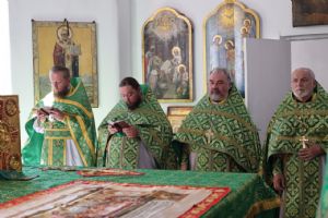 29 июня, в день отдания праздника Пятидесятницы, день памяти святителя Феофана Затворника Вышенского, епископ Волжский и Сернурский Феофан совершил Божественную литургию в Никольском кафедральном соборе г. Волжска.
