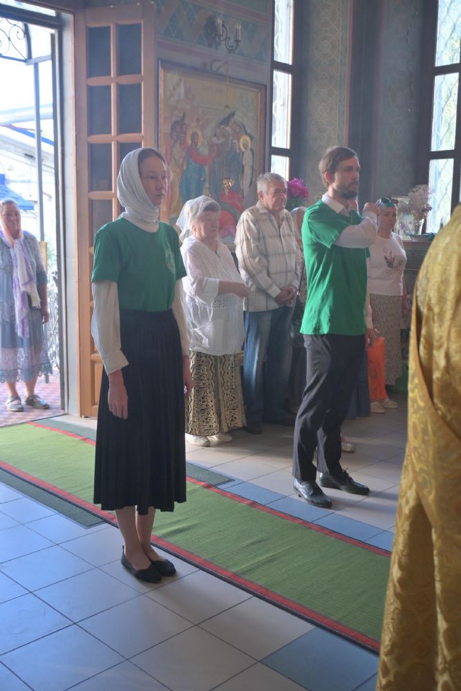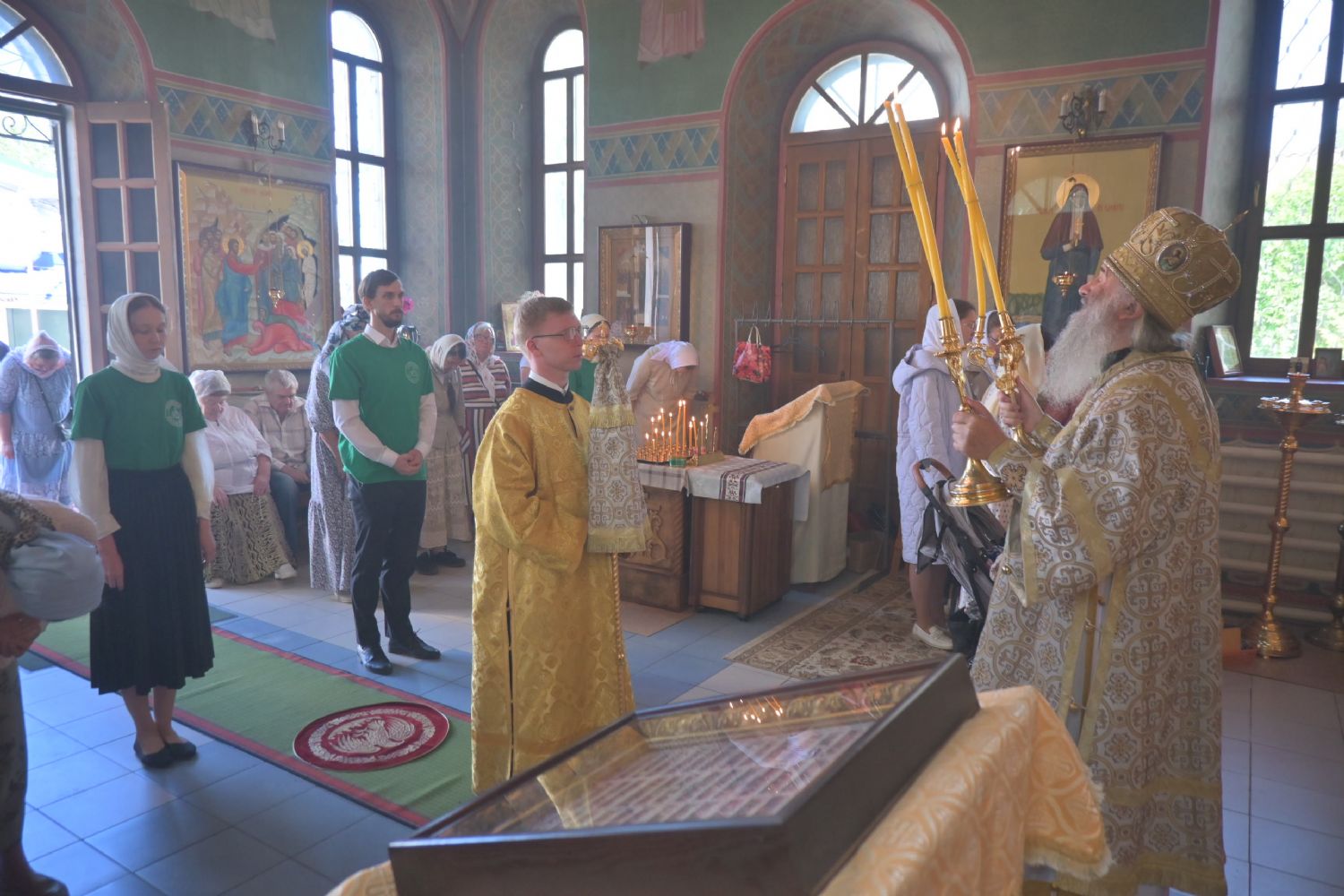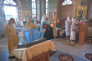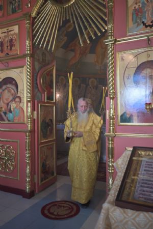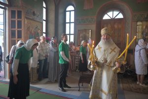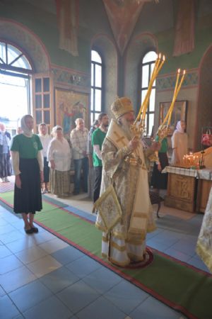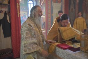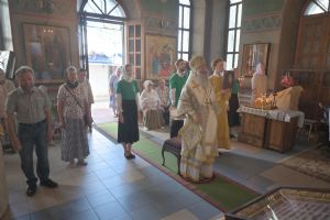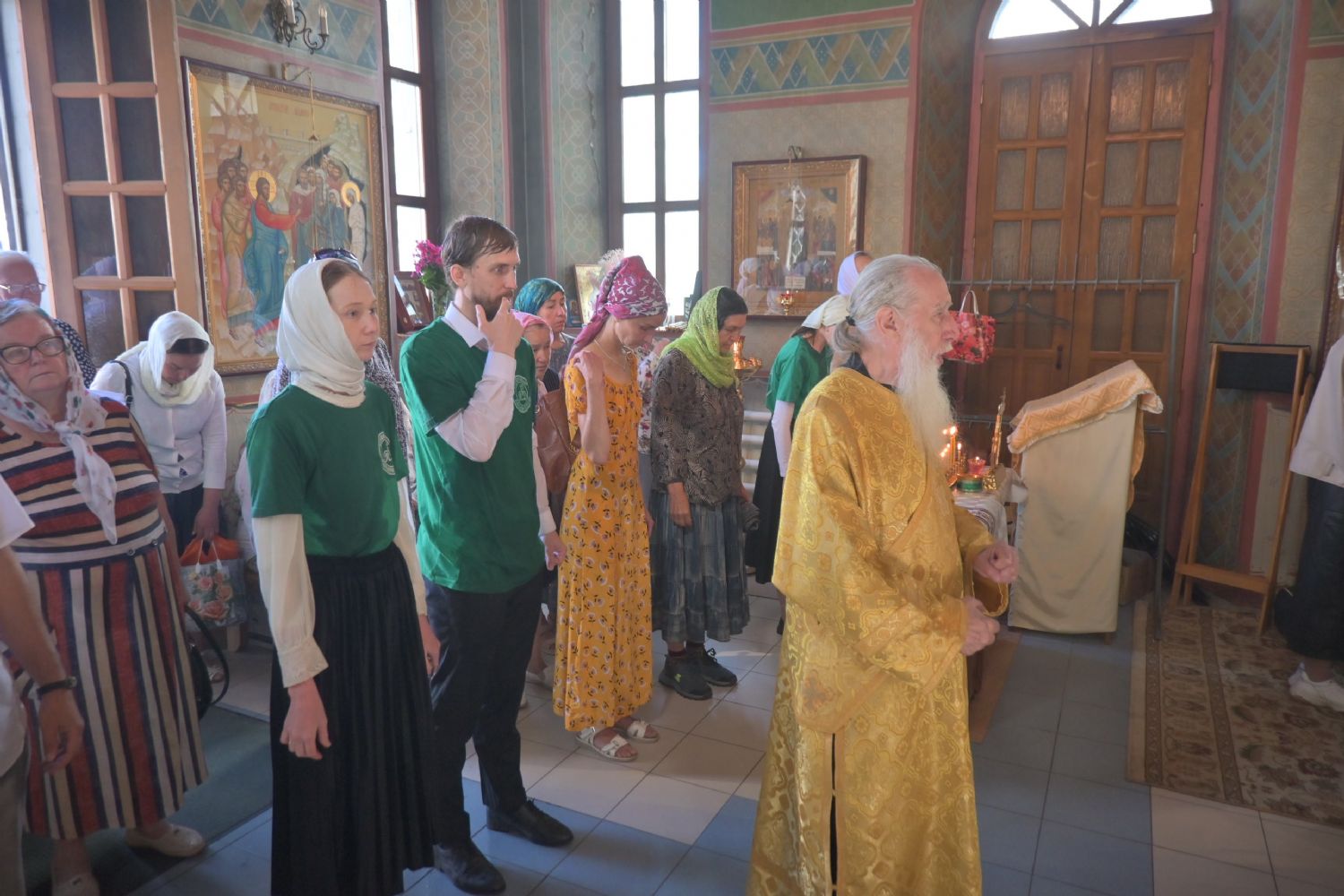 Владыке сослужили клирики храма Рождества Пресвятой Богородицы с. Семеновка иерей Сергий Асланов и протодиакон Михаил Козловский. Песнопения исполнял малый состав хора «Благовест» под управлением Ксении Бугуровой.