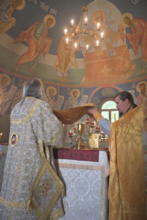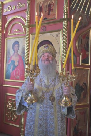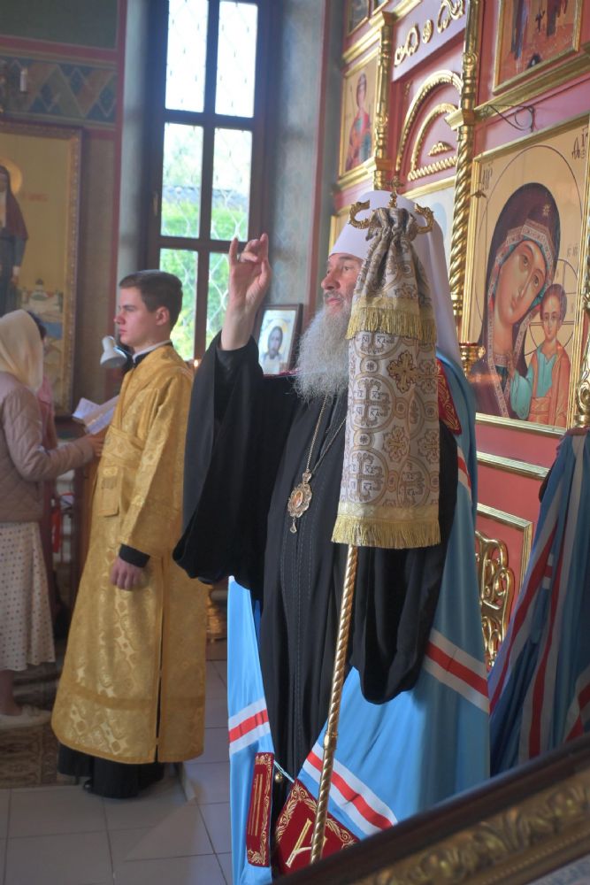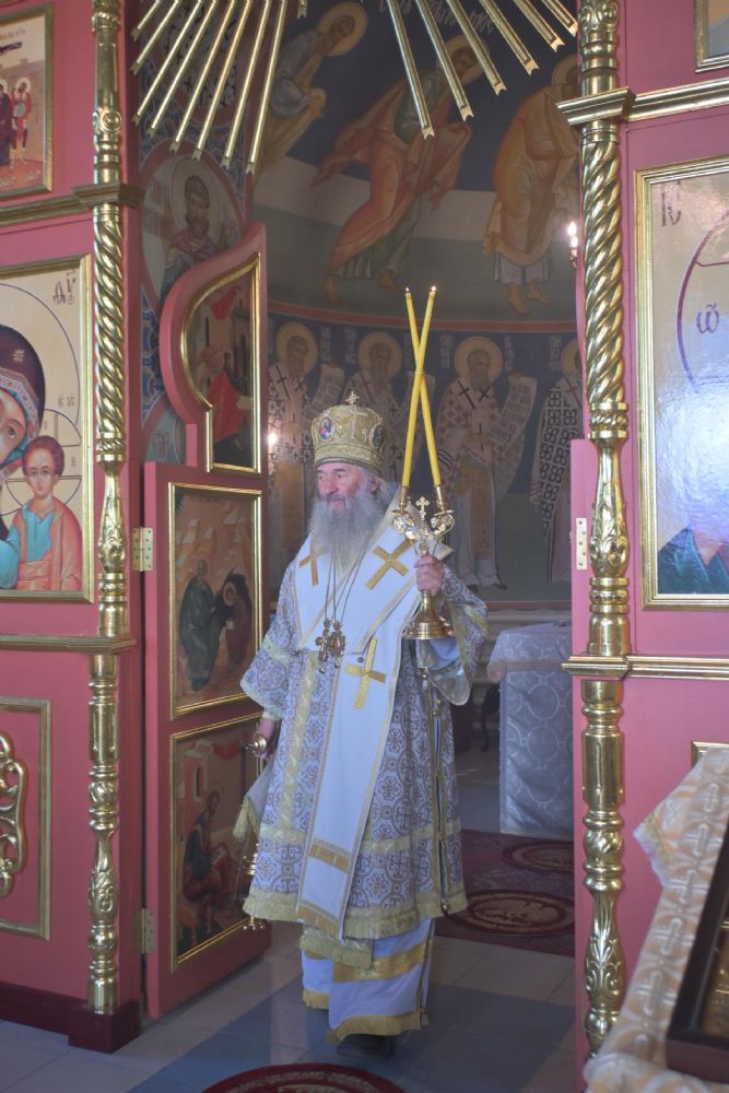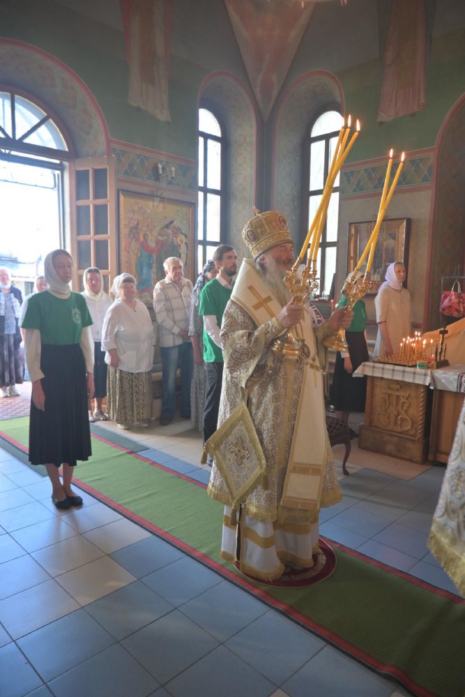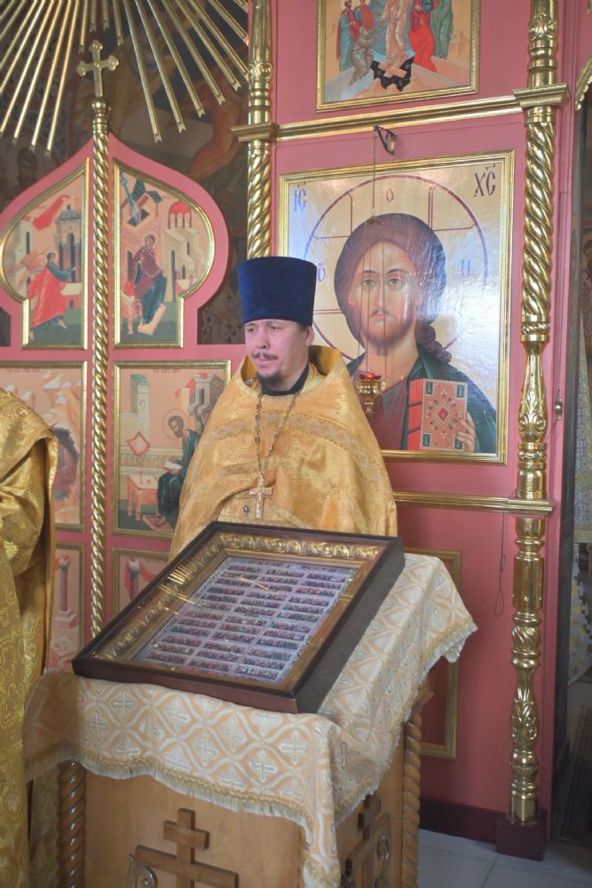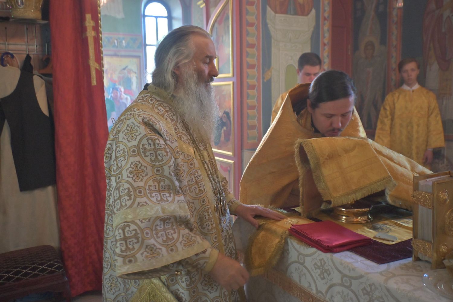 Владыке сослужили клирики храма Рождества Пресвятой Богородицы с. Семеновка иерей Сергий Асланов и протодиакон Михаил Козловский. Песнопения исполнял малый состав хора «Благовест» под управлением Ксении Бугуровой.