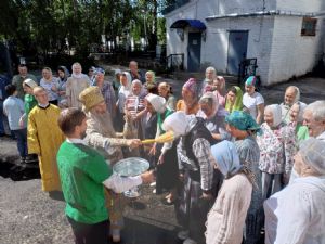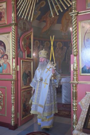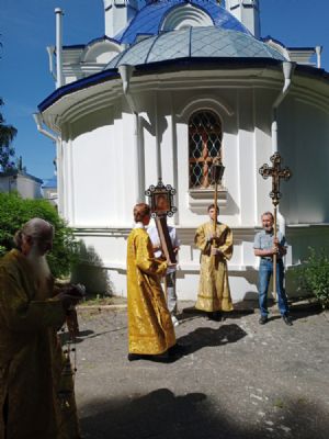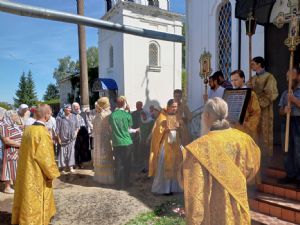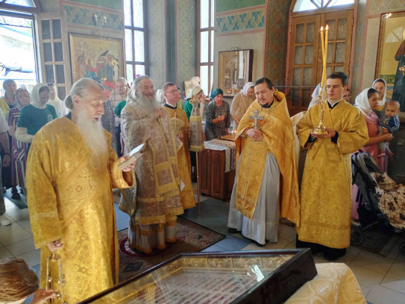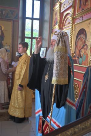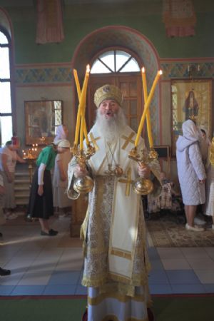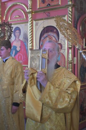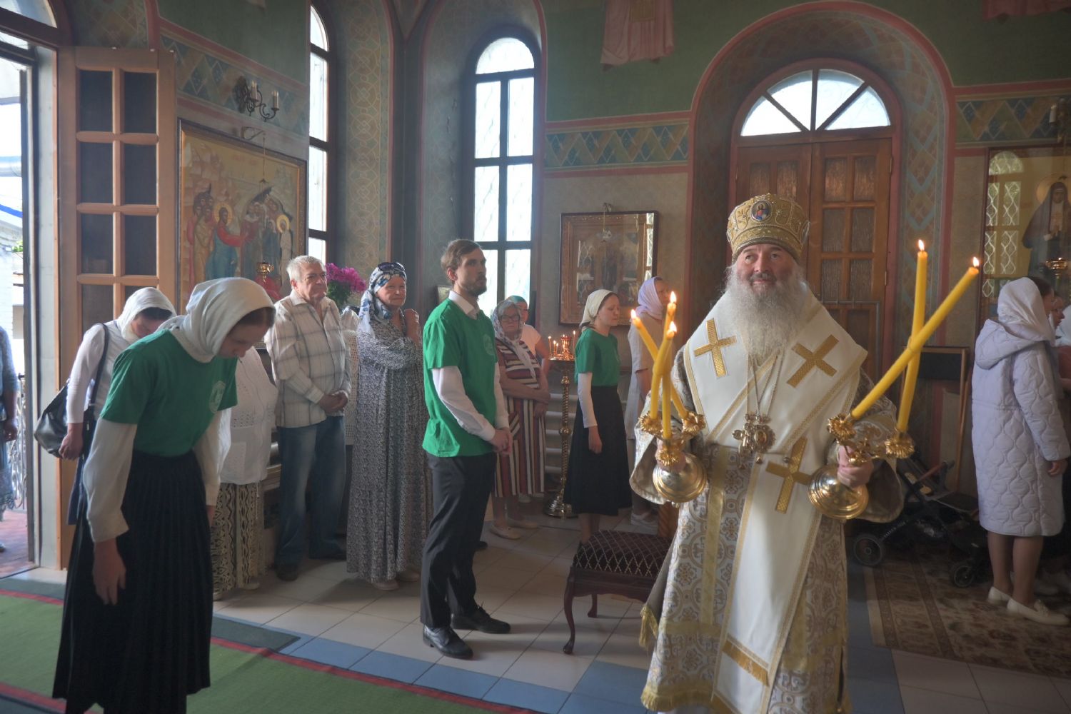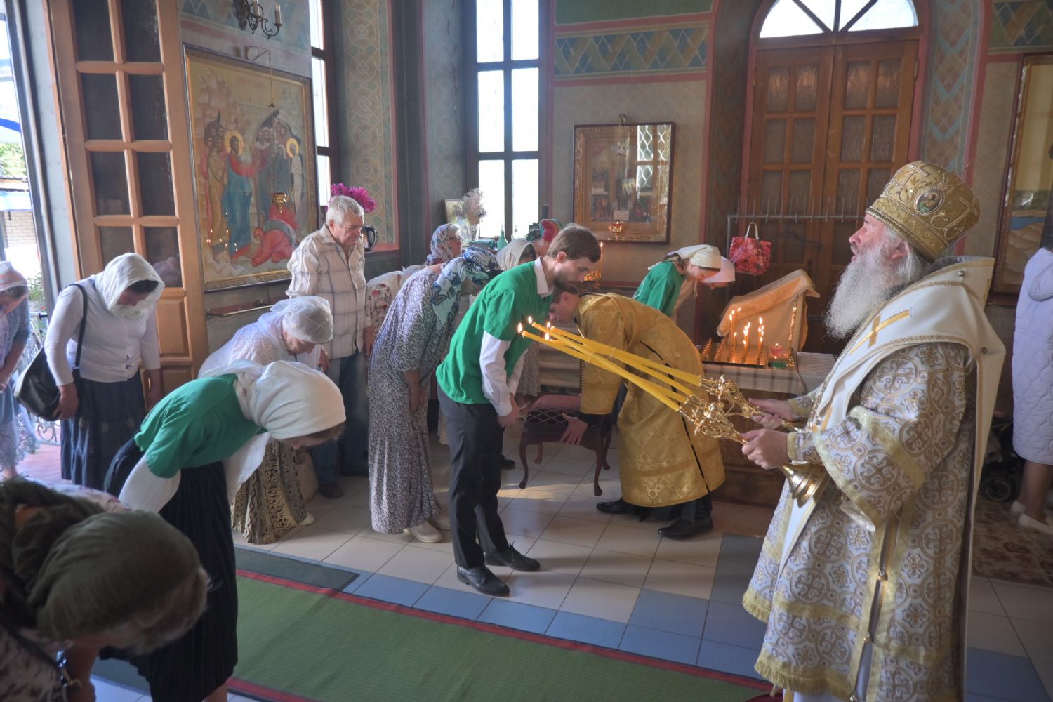 После Литургии по традиции престольных праздников прошел крестный ход вокруг храма со чтением Евангелия и кроплением святой водой. Затем митрополит Иоанн обратился к собравшимся с архипастырским словом.
