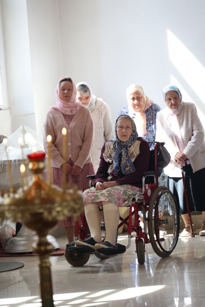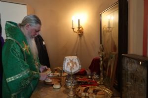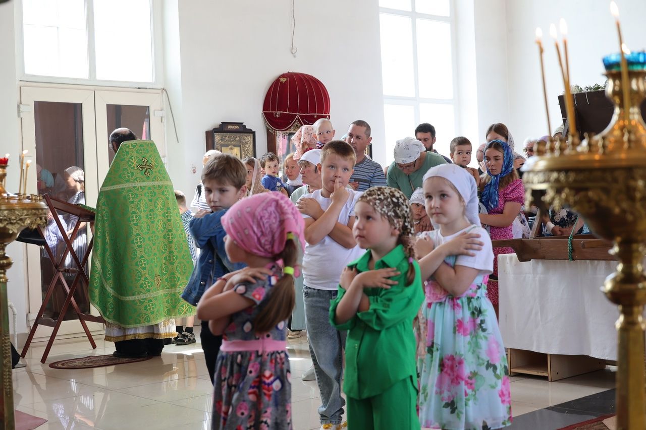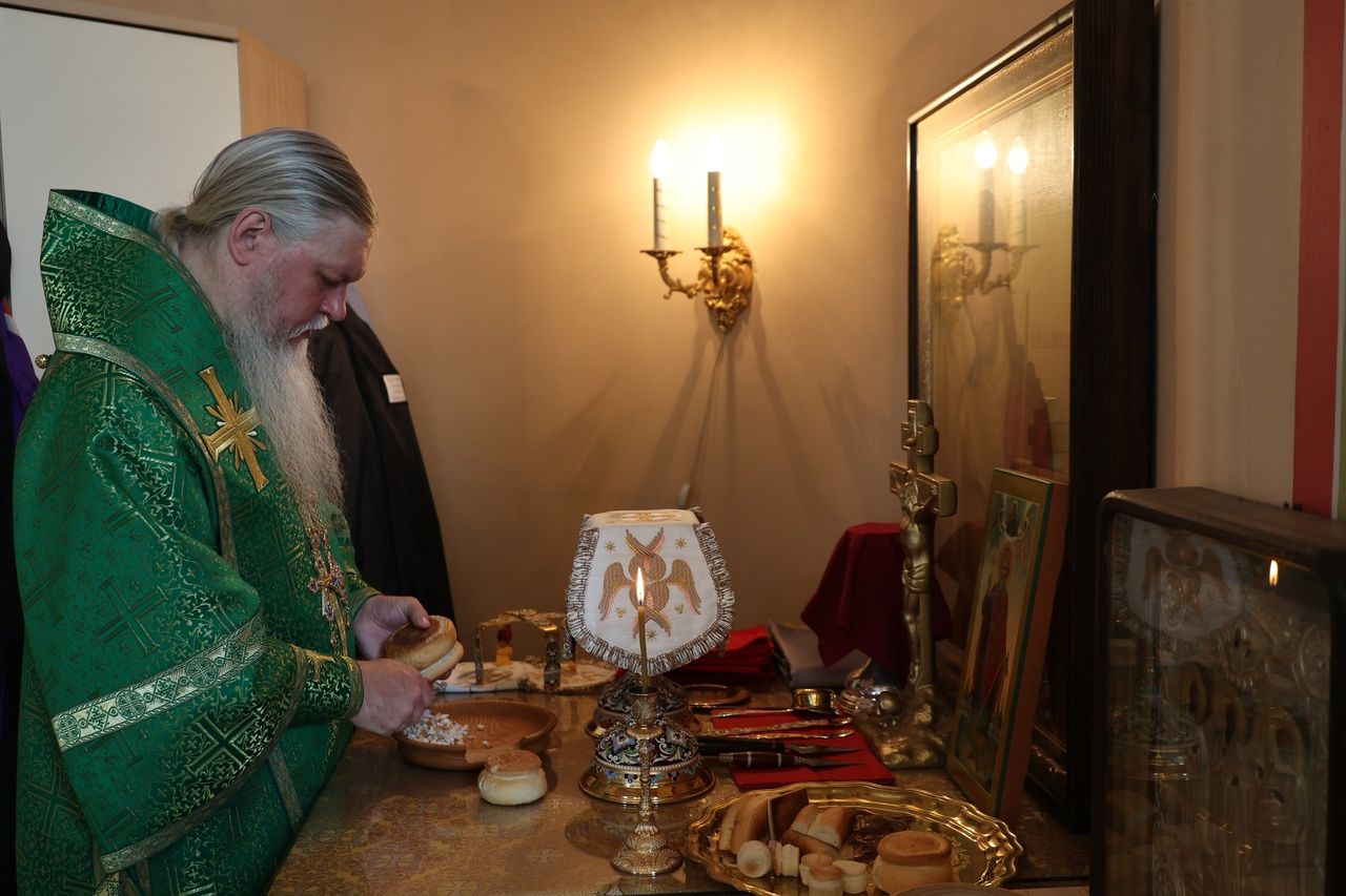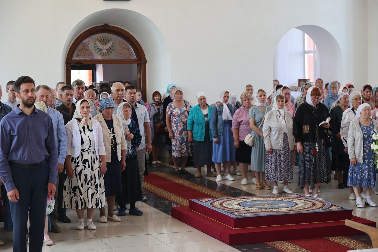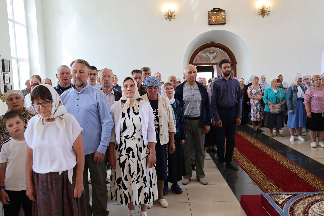 Владыке сослужили настоятель храма протоиерей Владимир Власов, настоятель храма преподобного Андрея Критского с. Елембаево протоиерей Сергий Бажанов, настоятель Покровского храма с. Марисола протоиерей Сергий Сильдушкин и клирик Никольского кафедрального собора г. Волжска диакон Иоанн Захаров.
