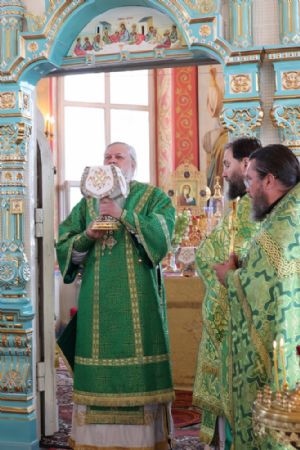 30 июня, в Неделю 1-ю по Пятидесятнице, Всех святых, епископ Волжский и Сернурский Феофан совершил Божественную литургию в Михаило-Архангельском храме п. Сернур.