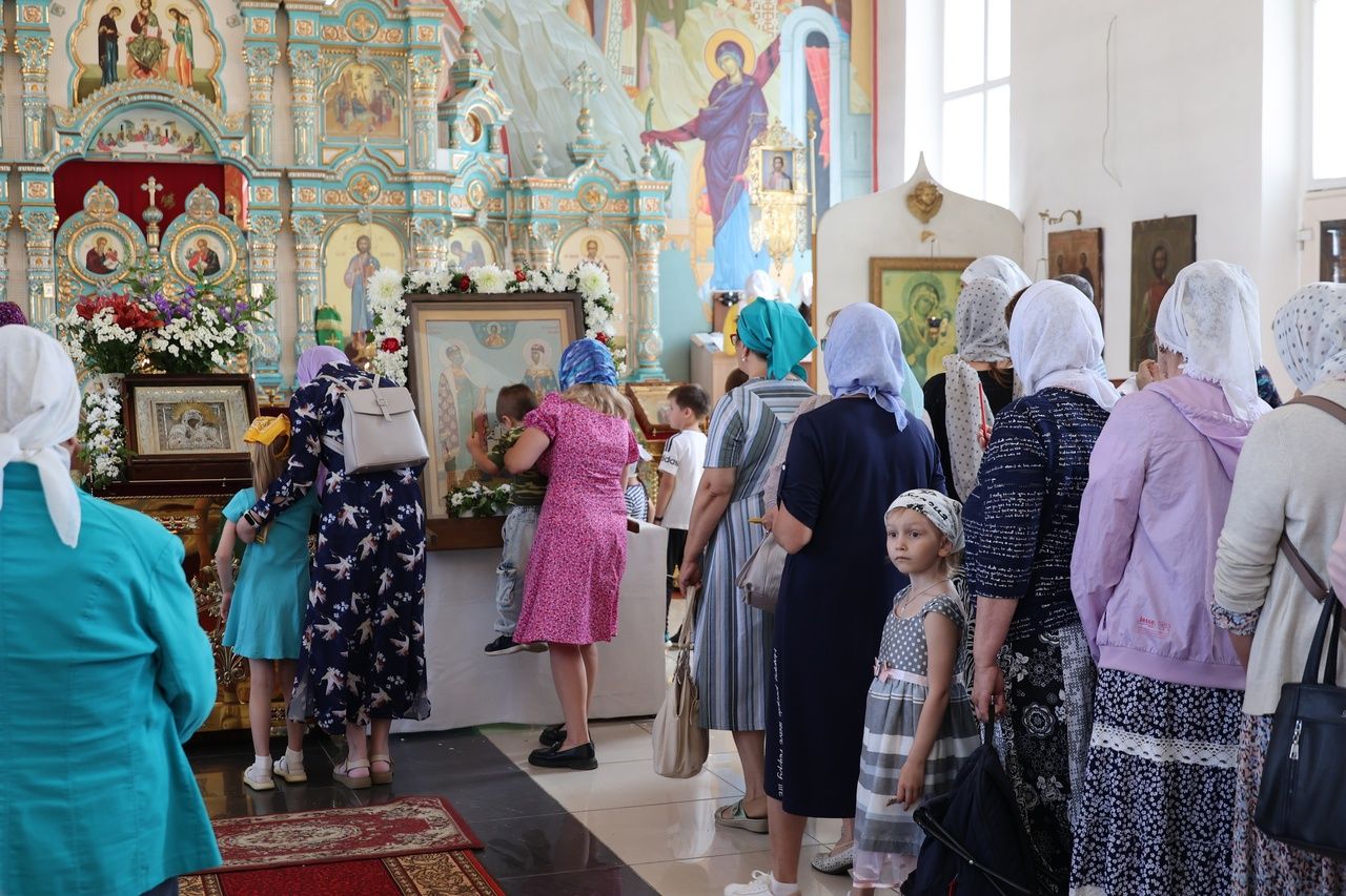 По заамвонной молитве духовенство совершило славление Божией Матери. По окончании Литургии глава епархии обратился к участникам богослужения с проповедью.