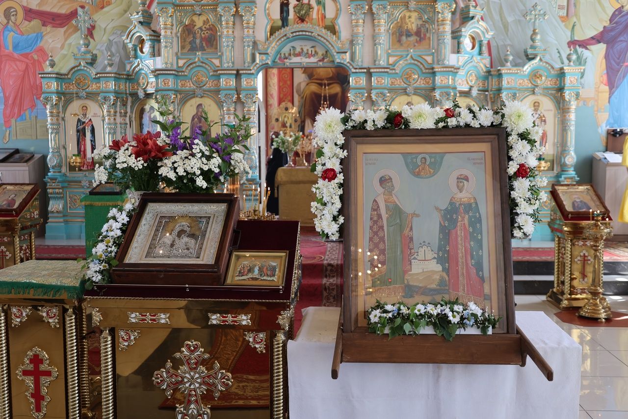 Поскольку нынешний год объявлен Годом семьи, то к Смоленской иконе ныне присоединилась ещё икона святых благоверных князей Петра и Февронии Муромских, которые являются небесными покровителями семейного счастья. Их память мы будем праздновать 8 июля, с молитвой и надеждой устремляя к ним свой мысленный взор, чтобы в нашей стране создавались благочестивые православные семьи, в которых рождались бы множество детей, воспитываемых во всяком благочестии и чистоте, и дети эти были бы утешением и для своих родителей, и для людей, встречающихся им на пути.