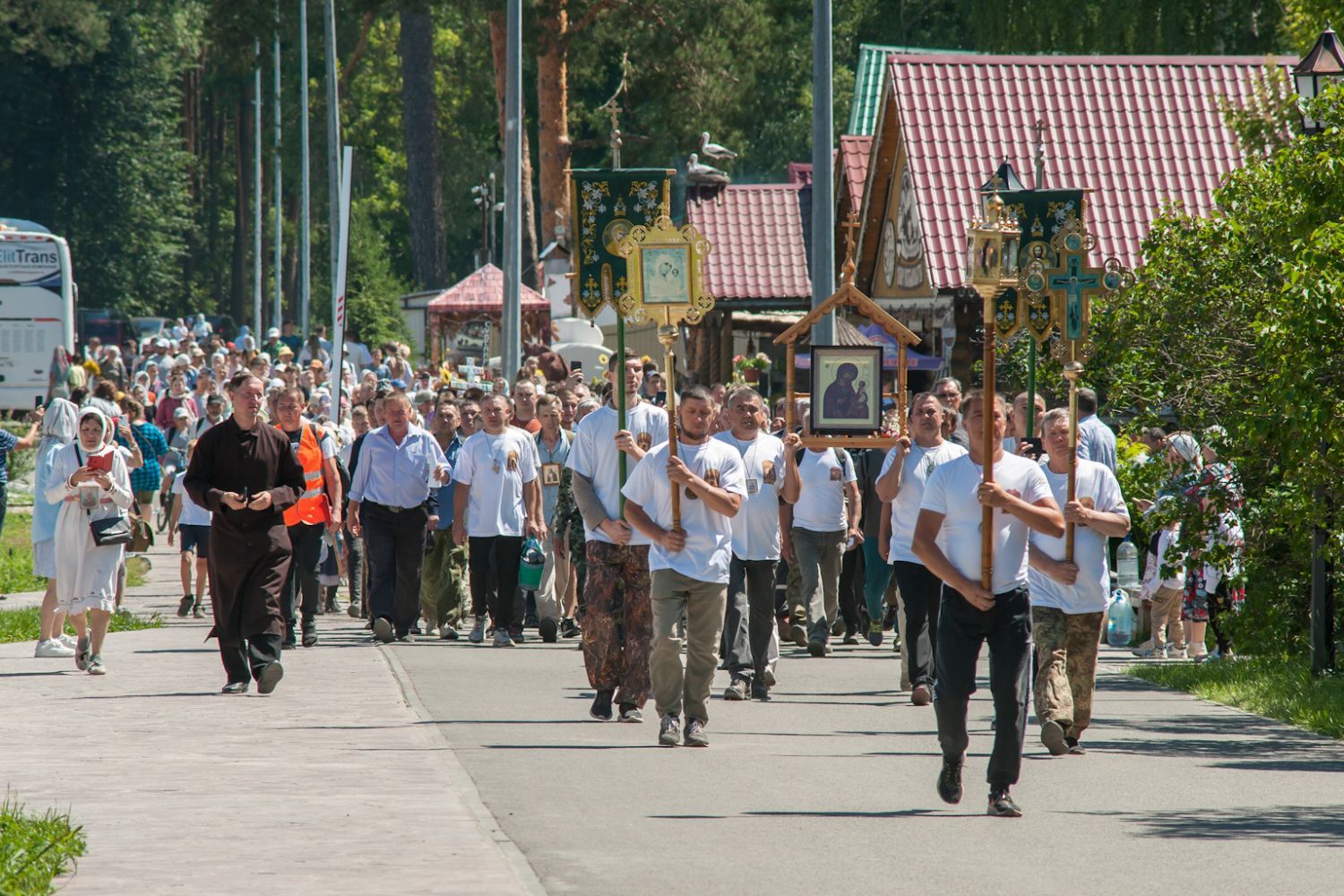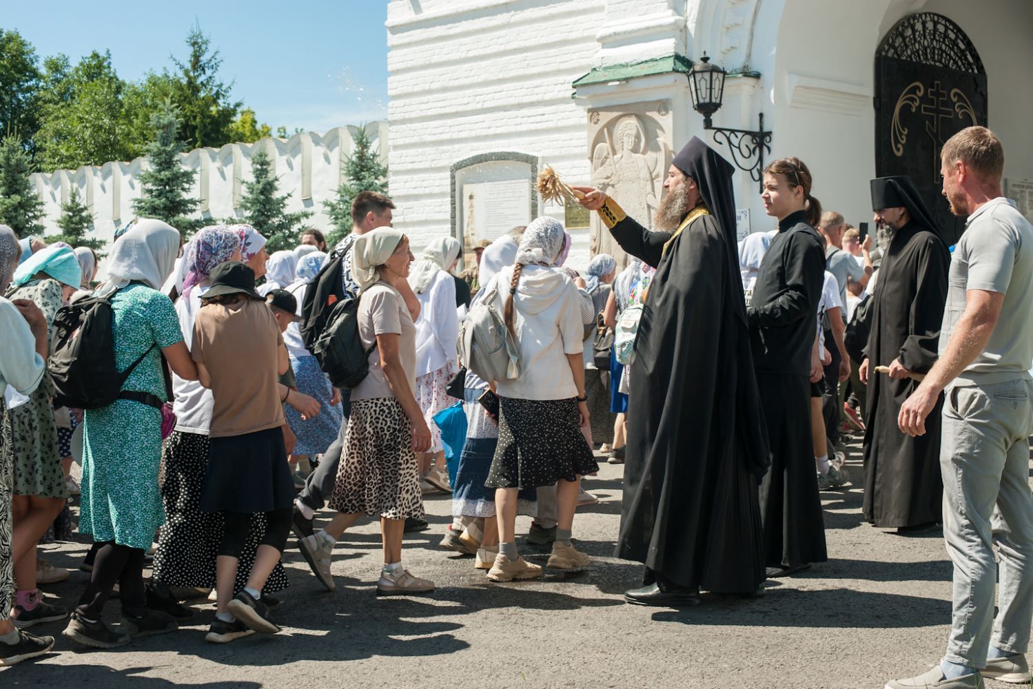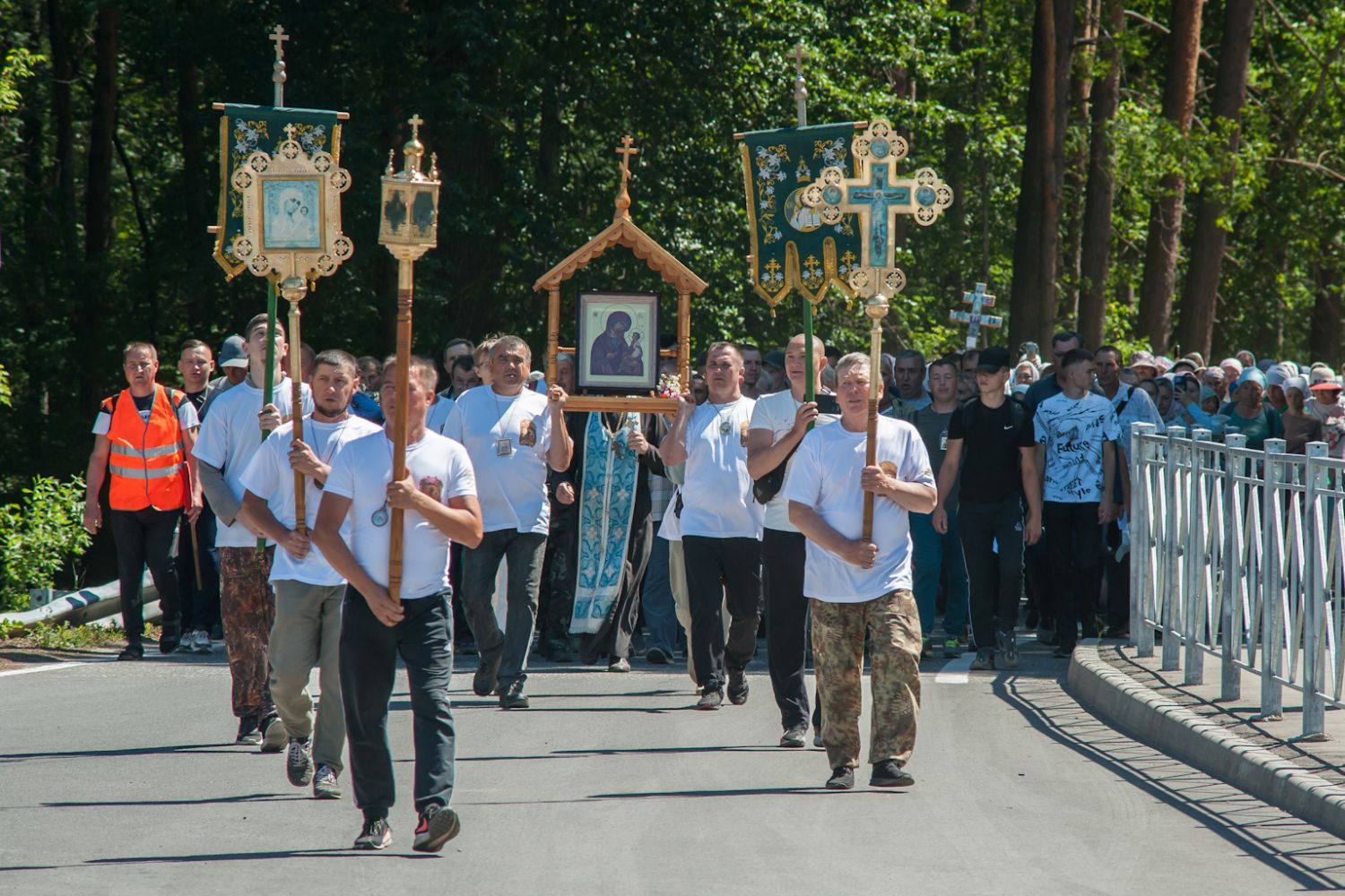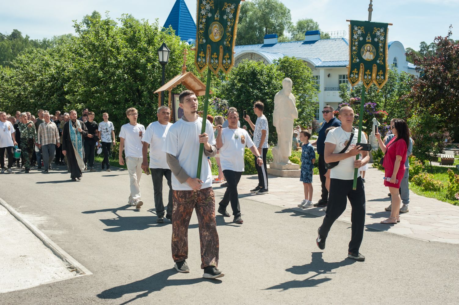 Верующих, преодолевших семнадцатикилометровый путь, встретил наместник монастыря игумен Гавриил (Рожнов), после чего гости обители вместе с братией вместе помолились перед Грузинской иконой Богородицы.