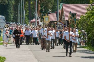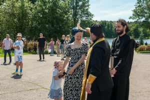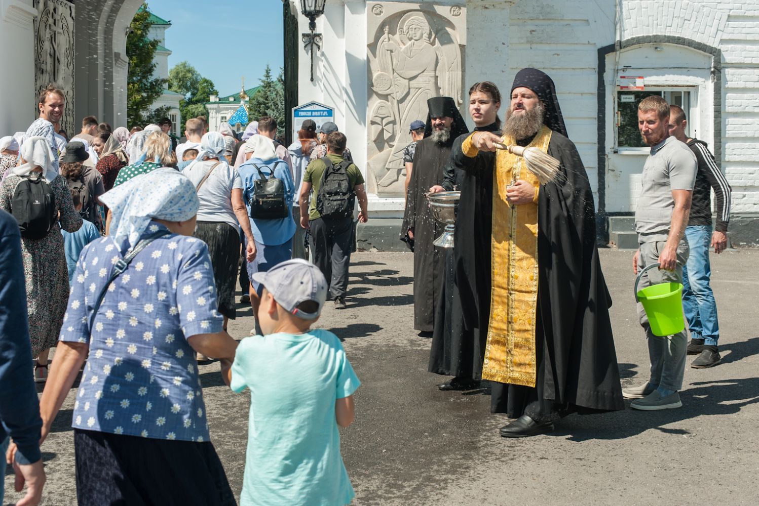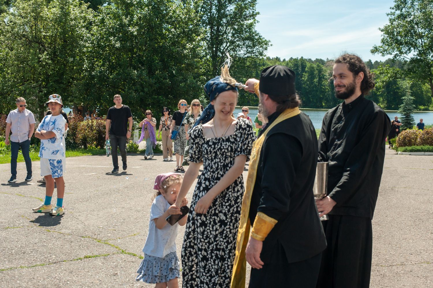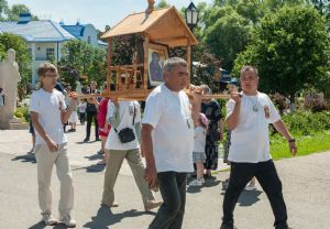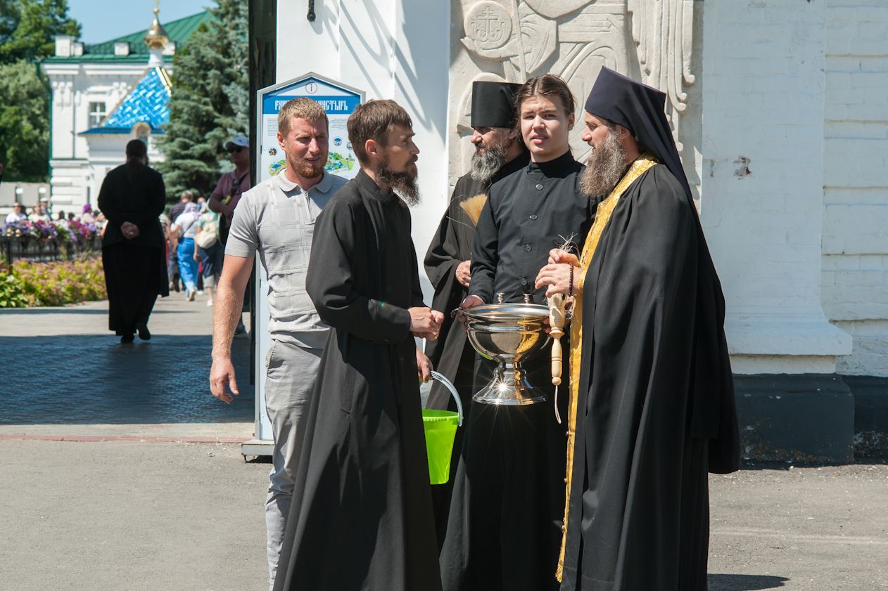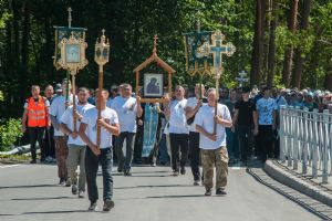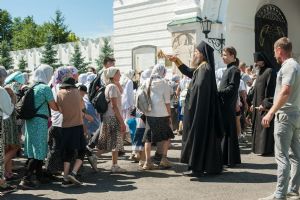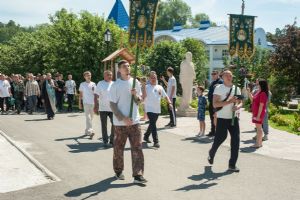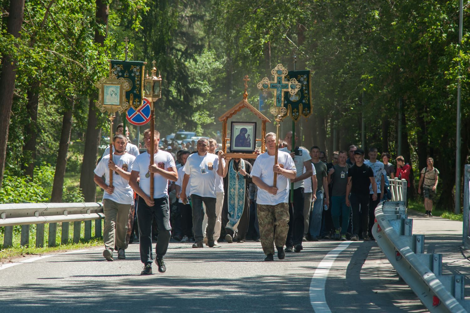 Верующих, преодолевших семнадцатикилометровый путь, встретил наместник монастыря игумен Гавриил (Рожнов), после чего гости обители вместе с братией вместе помолились перед Грузинской иконой Богородицы.