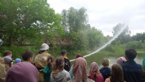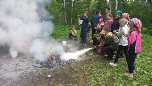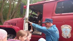 Огнеборцы продемонстрировали специальную пожарную технику и пожарно-спасательное вооружение, показали предметы боевой одежды. Дети узнали много нового: для чего пожарным необходим специальный костюм, с помощью чего они дышат в задымленных участках, чем укомплектована машина и какими средствами пожарные пользуются при тушении возгораний и т.д. Также ребятам рассказали о наиболее частых причинах пожаров и о том, как следует себя вести в экстремальных ситуациях.
