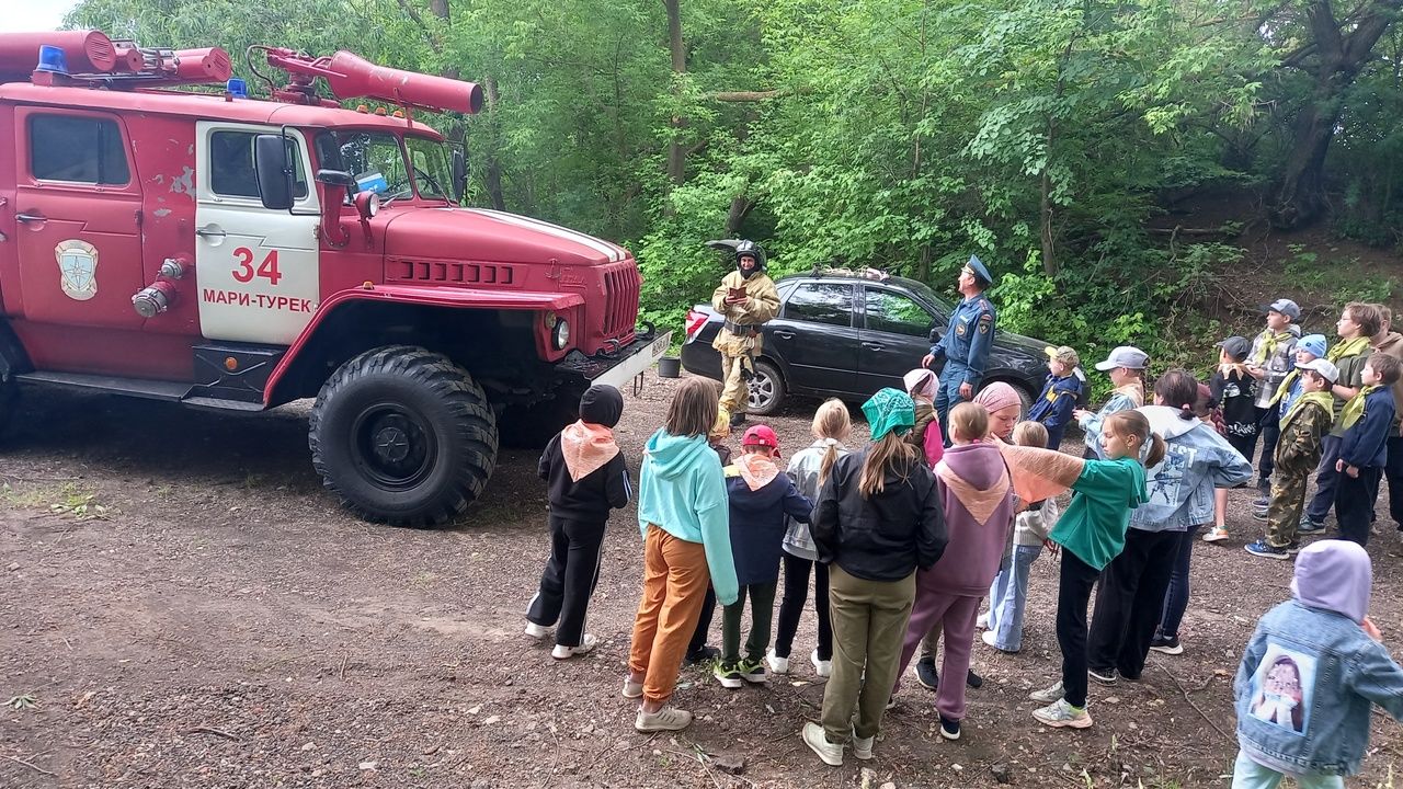 На четвертый день в гости к ребятам приехали сотрудники МЧС п. Мари-Турек – они организовали пожарную эстафету, где участников ожидали увлекательные этапы: на скорость снаряжались в пожарный костюм, с помощью огнетушителя тушили небольшой очаг пожара.