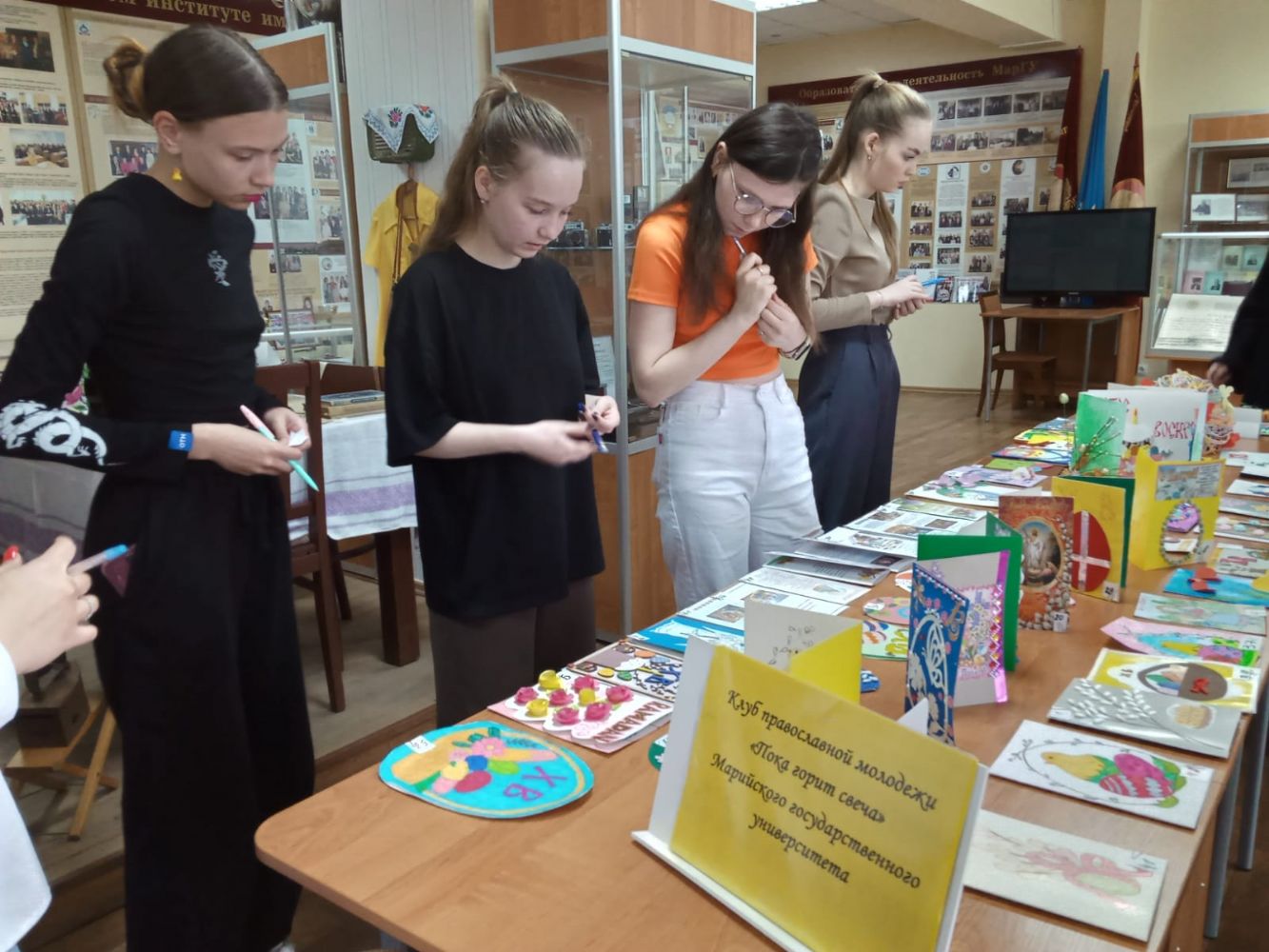 Клуб православной молодежи «Пока горит свеча» Марийского государственного университета провел ставшую уже традиционной выставку творческих работ студентов вуза «Пасхальная открытка».