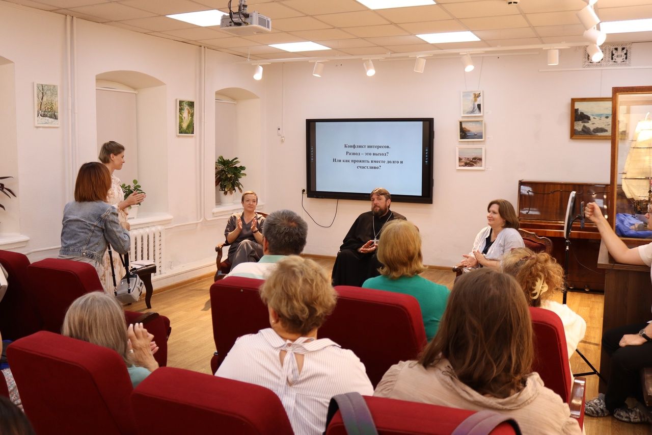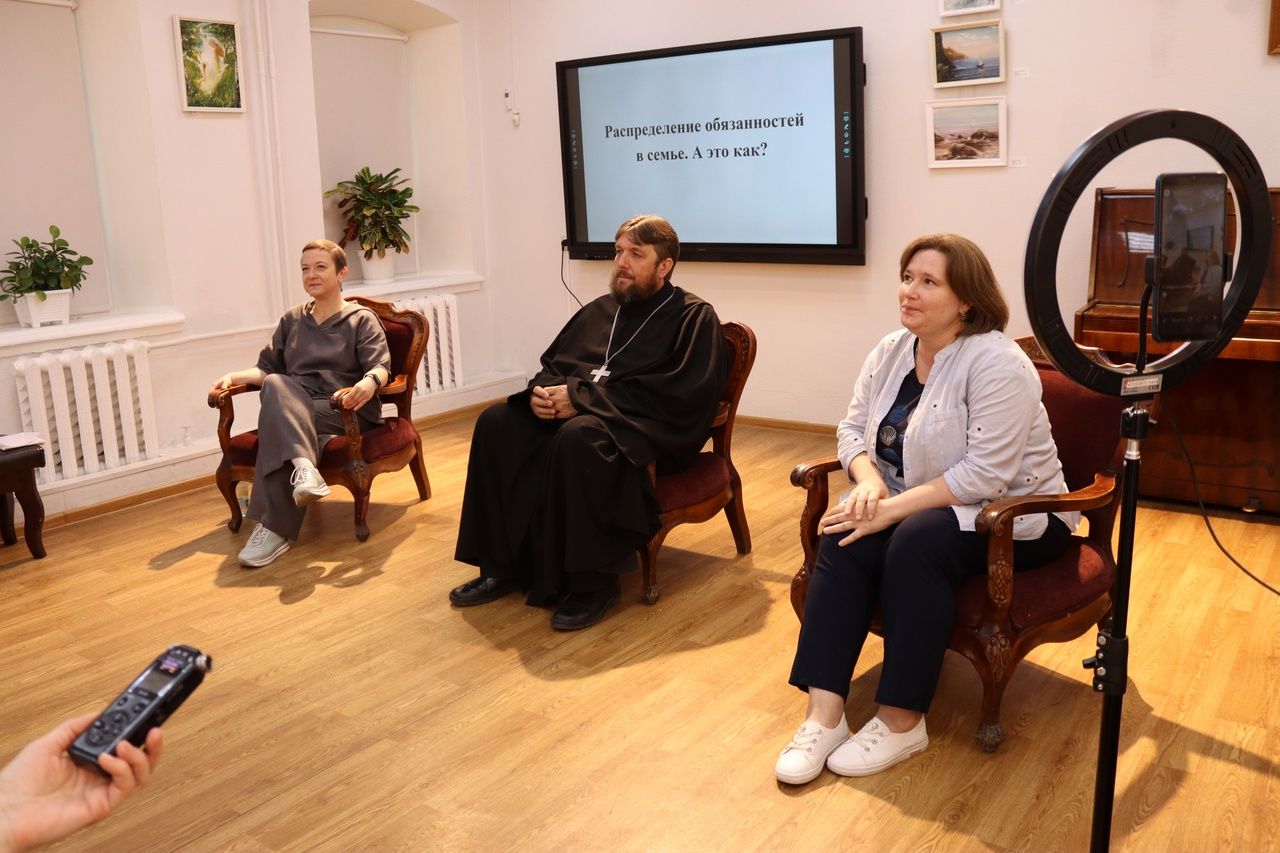 Приглашенные эксперты осветили данные вопросы с разных сторон: психолог Любовь Кислякова – с позиции психологии, благочинный Йошкар-Олинского церковного округа протоиерей Андрей Норкин представил православную точку зрения, руководитель фольклорного объединения «Царёв город» Мария Смирнова рассказала про семейные традиции на Руси.
