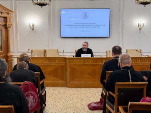 В последний день обучения с заключительным словом к слушателям выступил Председатель Учебного комитета Русской Православной Церкви, ректор Общецерковной аспирантуры и докторантуры протоиерей Максим Козлов.