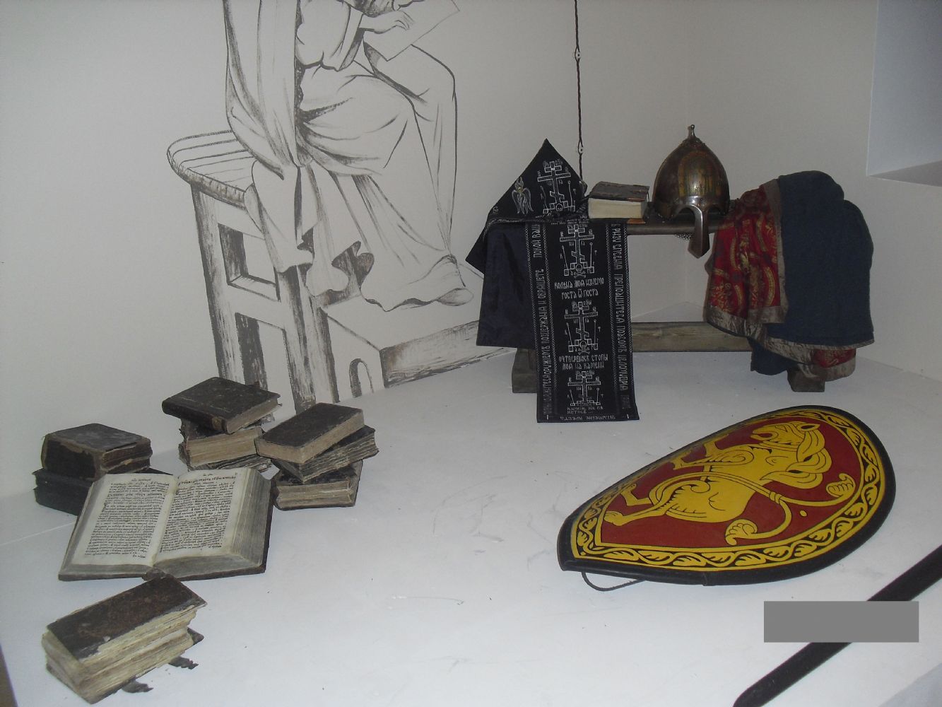 В этом же здании находится монастырский музей – здесь мы видим портреты настоятелей, игуменов, благотворителей и строителей монастыря. Здесь расположена и келья Александра Невского, его вещи – шлем, щит, монашеское облачение, святые книги.