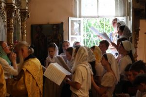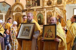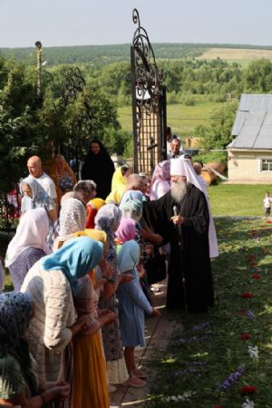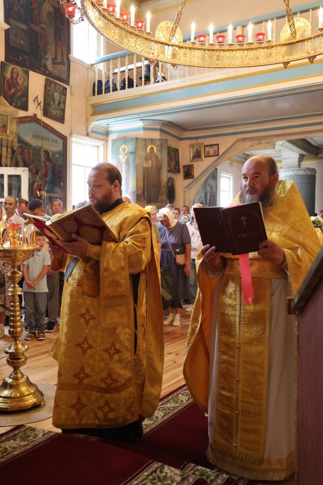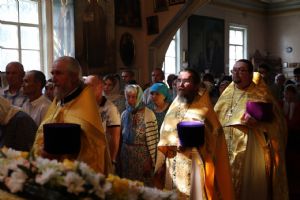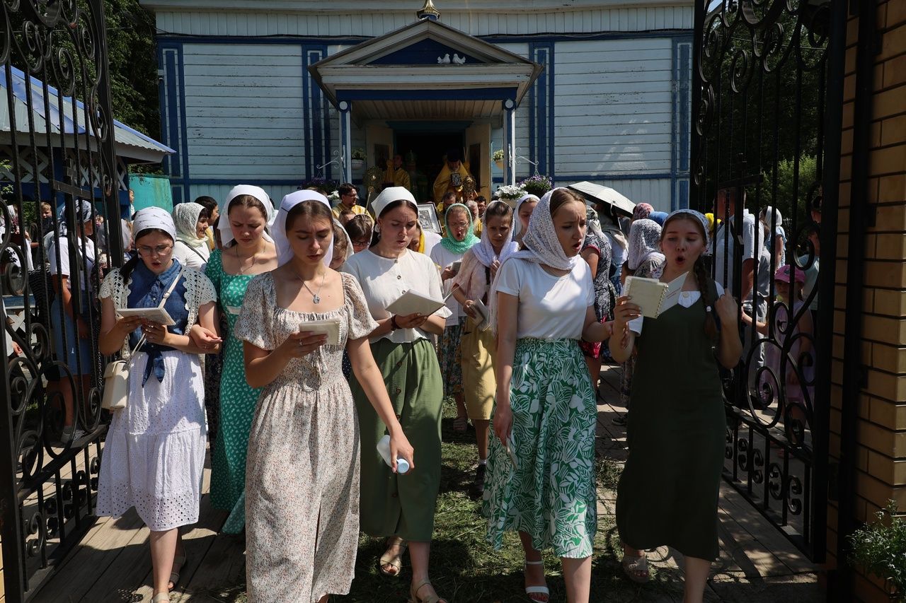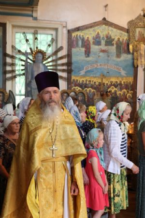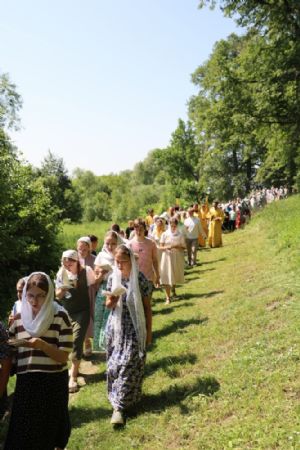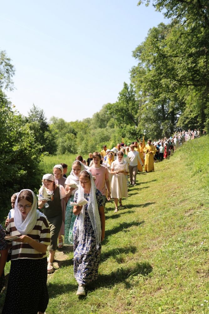 После Литургии был совершен крестный ход с чудотворной иконой Божией Матери «Смоленская-Седмиезерная» до источника, освященного в честь Смоленской иконы Богородицы, где был отслужен водосвятный молебен.
