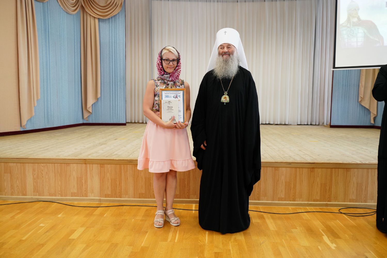 Собравшимся в актовом зале Православного центра был продемонстрирован видеофильм о наиболее ярких моментах проекта, а также творческая работа одной из команд-призеров – Медицинского колледжа – о праведном Феодоре Ушакове. Исполнением песен церемонию награждения украсила ученица Национальной гимназии искусств, лауреат всероссийских конкурсов Ирина Егошина.
