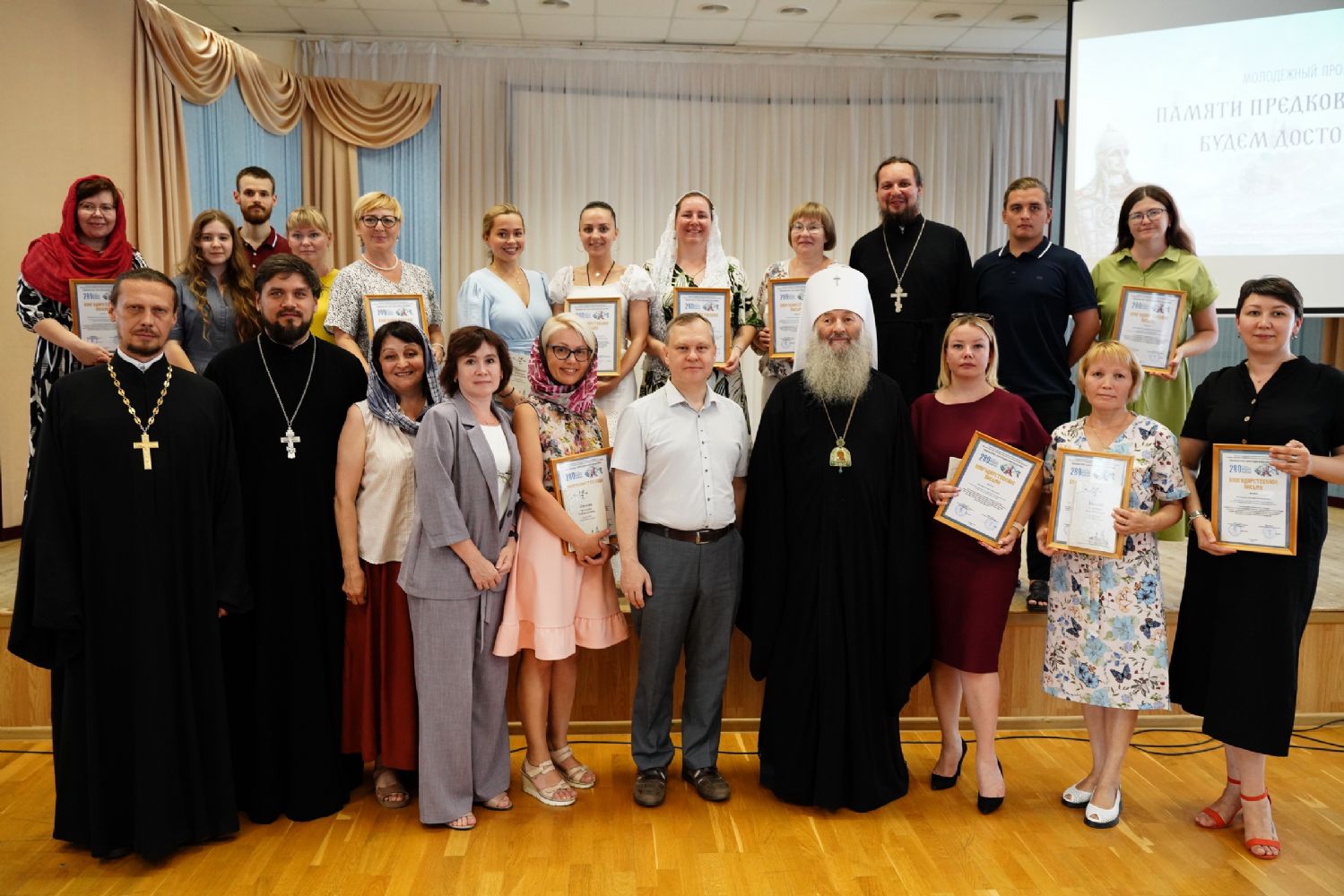 4 июля в Православном центре Йошкар-Олы прошла церемония награждения организаторов мероприятий и руководителей команд-победителей молодежного проекта «Памяти предков великих будем достойны!», посвященного 280-летию со дня рождения святого праведного адмирала Феодора Ушакова.