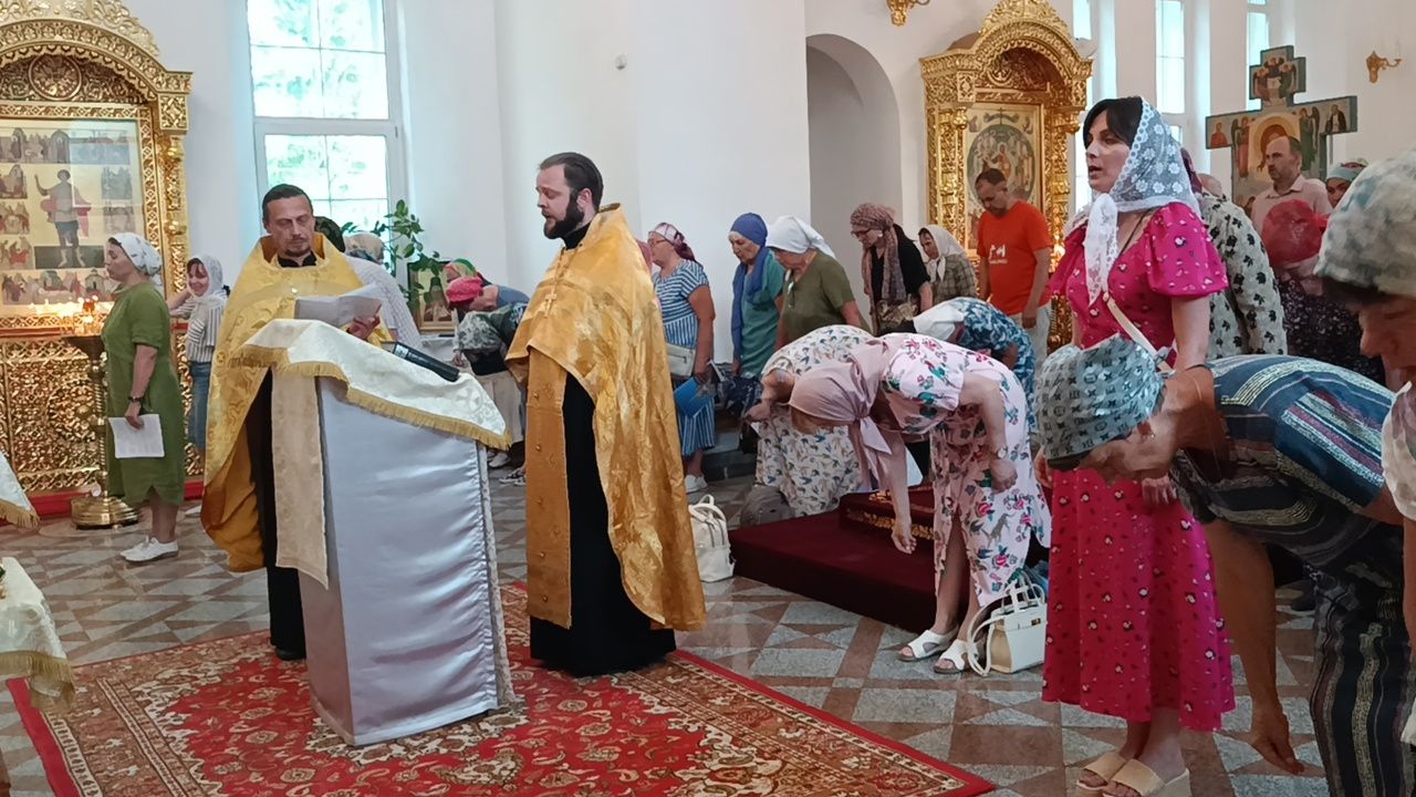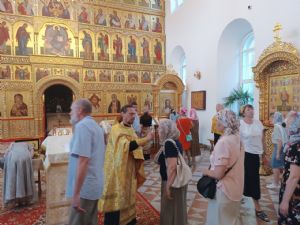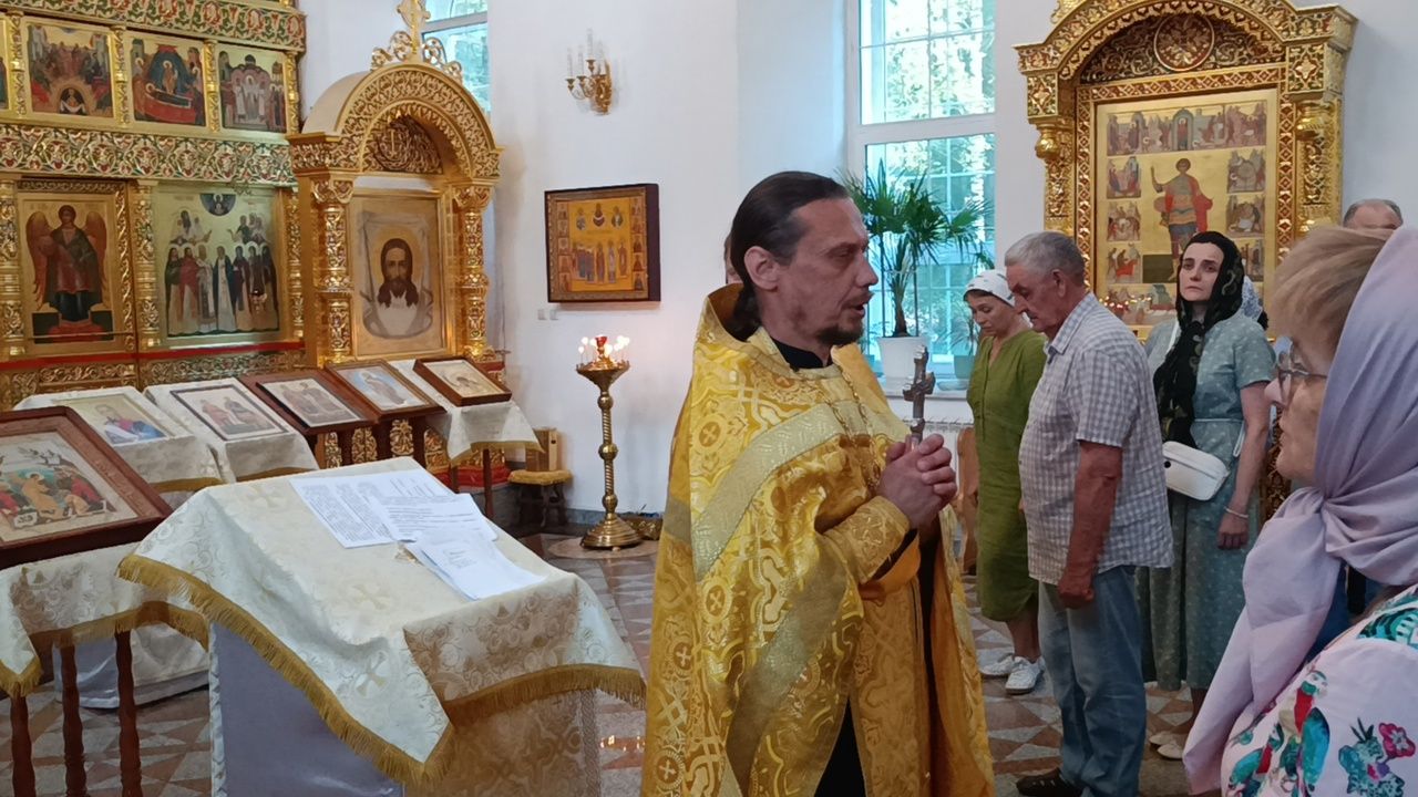 Так, 3 июля очередной молебен отслужили клирик Серафимовского храма иерей Виктор Умрихин и настоятель Воскресенского собора города иерей Андрей Кочаков. Песнопения молебна исполняли все собравшиеся под управлением регента Ирины Айгловой.