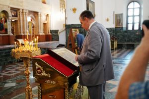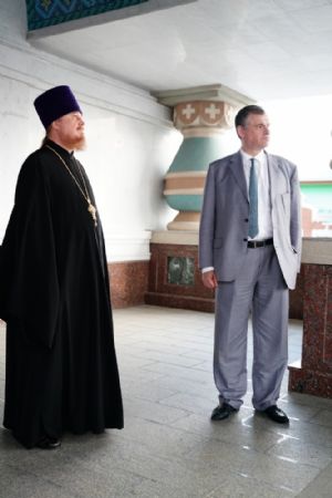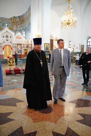 Гостя встретил ключарь собора протоиерей Сергий Поглазов, он рассказал об устройстве храма, хранящихся в нем святынях.