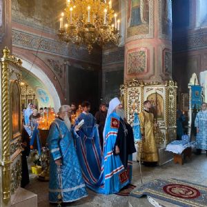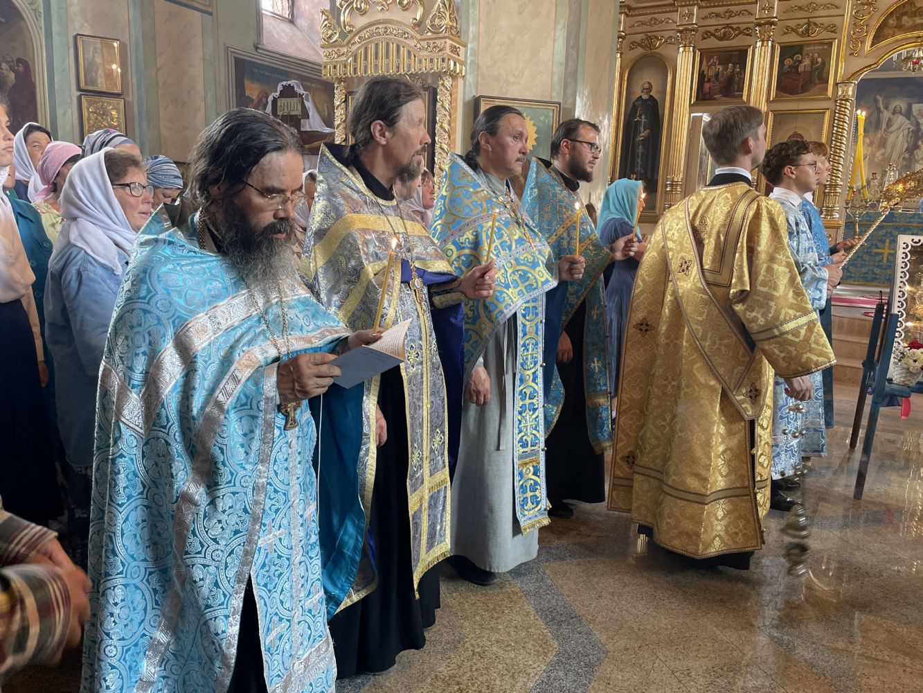 После Литургии священство вознесло славление Божией Матери, и митрополит Иоанн обратился к собравшимся с архипастырским словом.