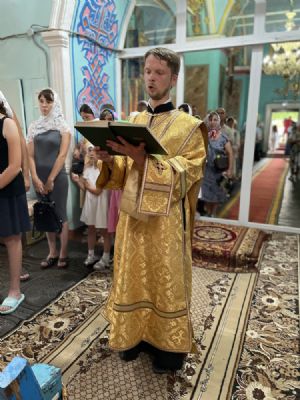 Митрополит Иоанн возглавил в храме праздничное всенощное бдение. Архипастырю сослужили благочинный Козьмодемьянского церковного округа протоиерей Алексий Сущев, настоятель Владимирского храма иерей Алексий Васюткин и духовенство Йошкар-Олинской епархии. Часть богослужебных песнопений и чтений исполнялась на марийском языке.