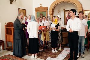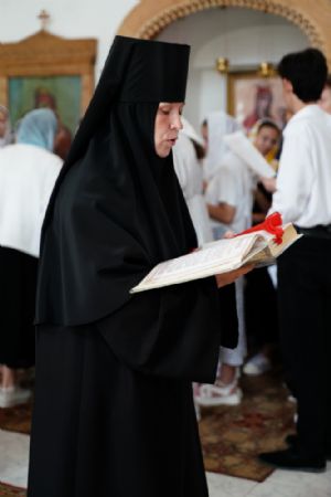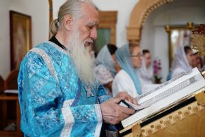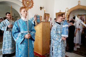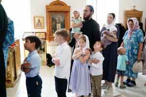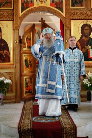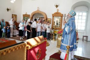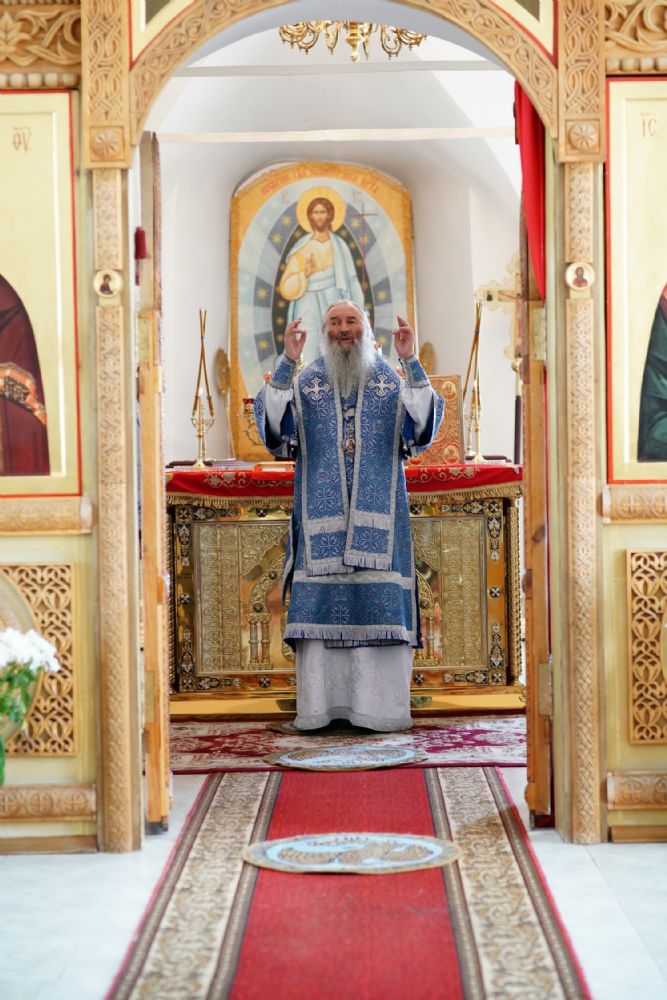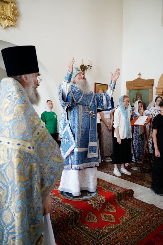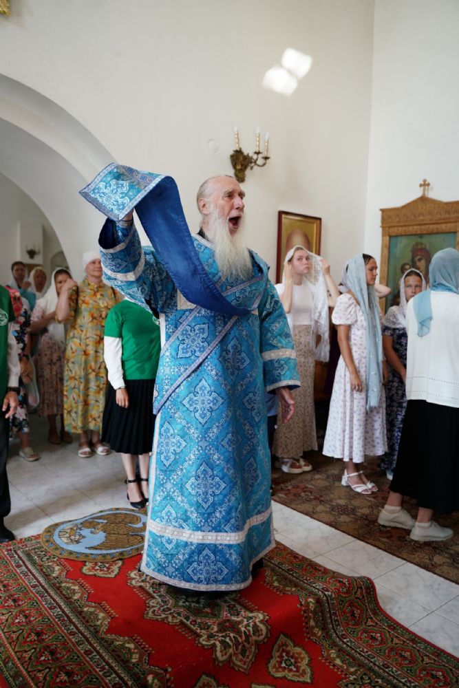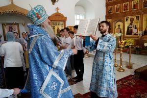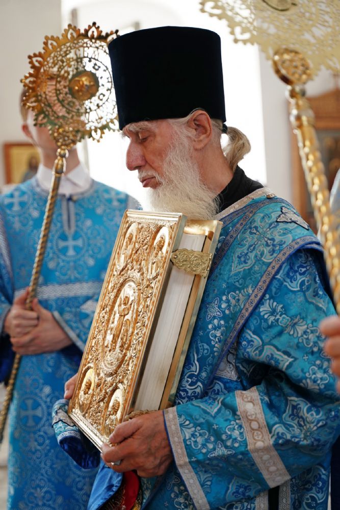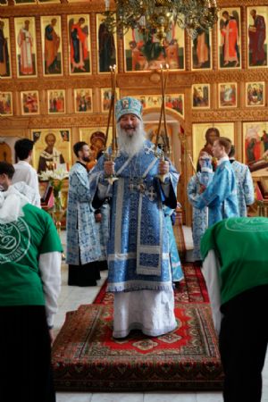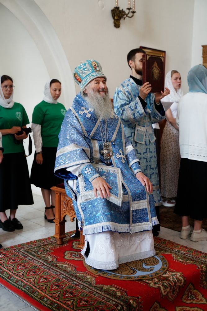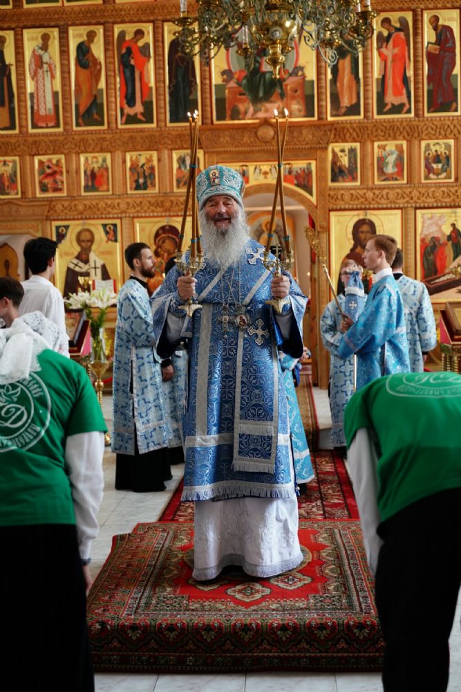 Архипастырю сослужили клирик монастыря иерей Михаил Лежнин и протодиакон Михаил Козловский. Песнопения исполнял детско-юношеский хор «Благовест» под управлением Татьяны Черновой.