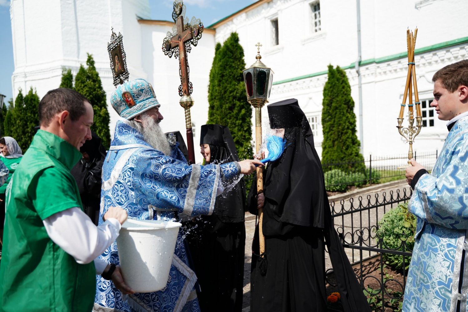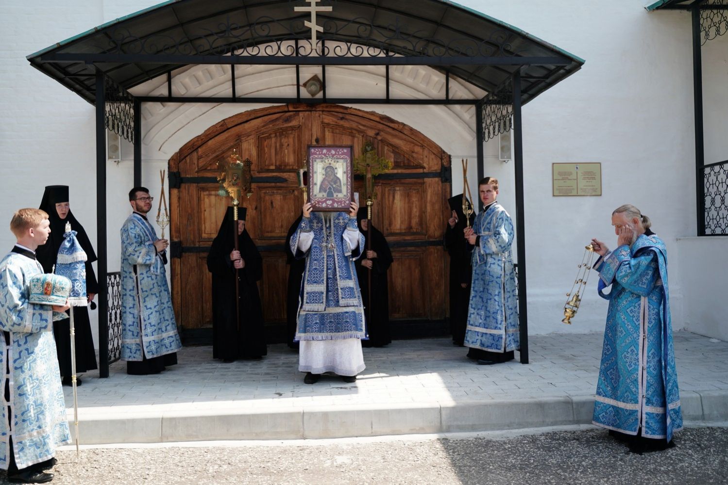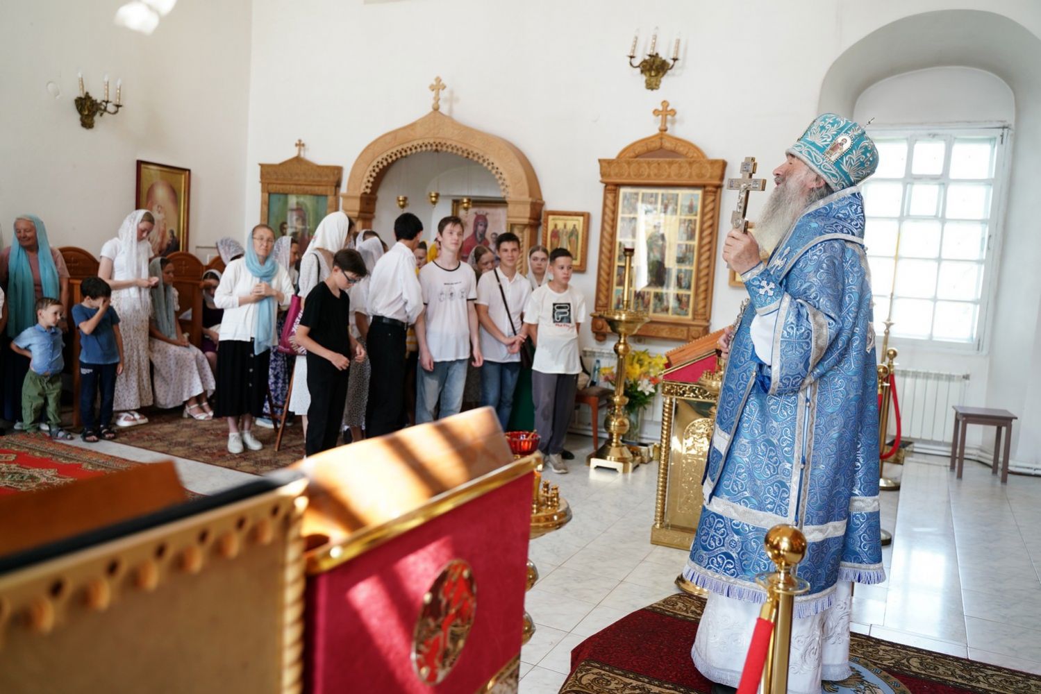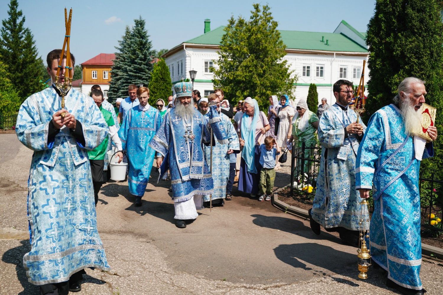 Архипастырю сослужили клирик монастыря иерей Михаил Лежнин и протодиакон Михаил Козловский. Песнопения исполнял детско-юношеский хор «Благовест» под управлением Татьяны Черновой.