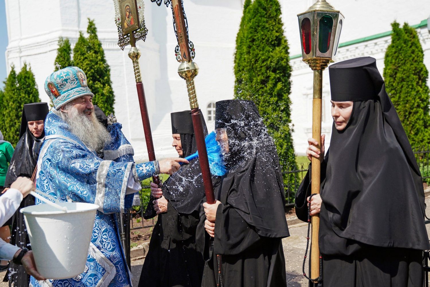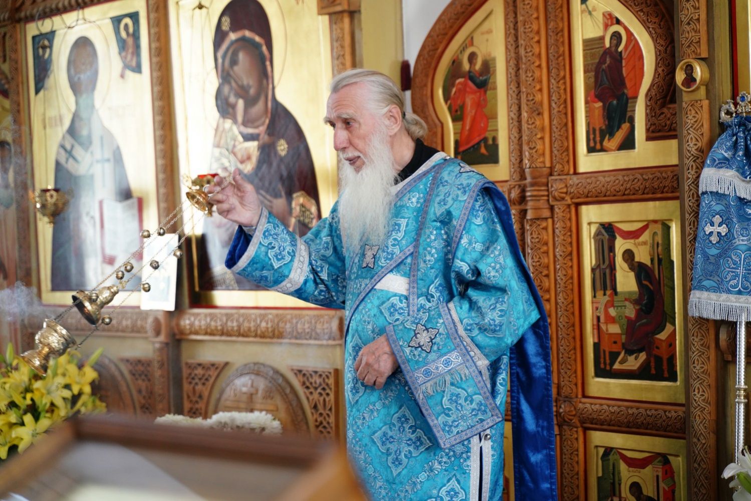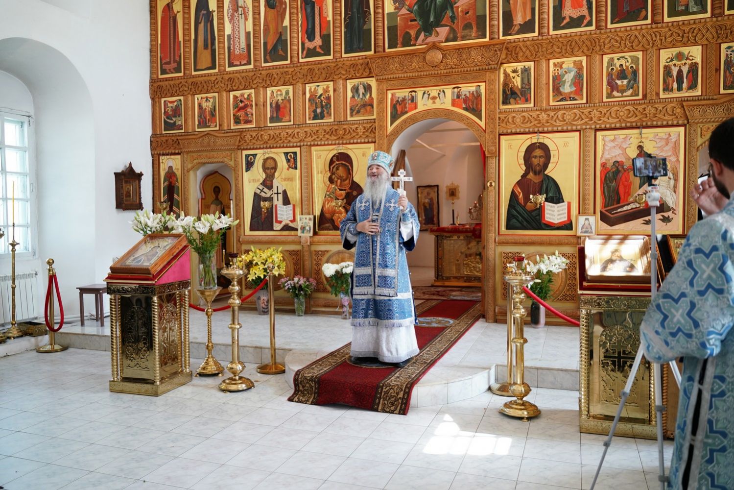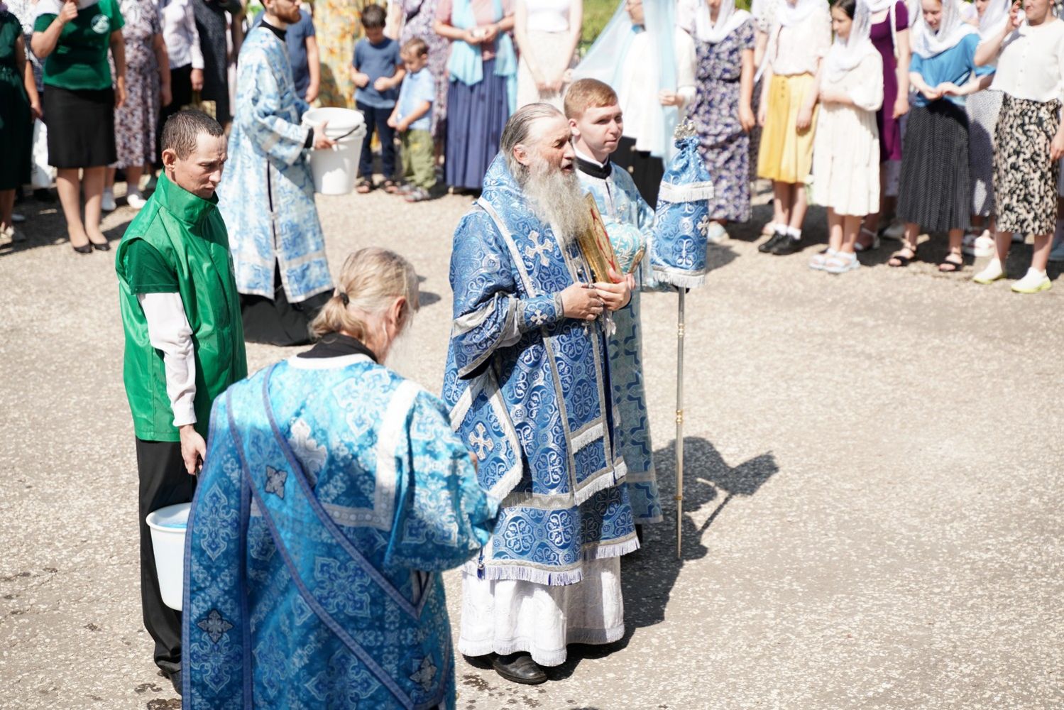 Архипастырю сослужили клирик монастыря иерей Михаил Лежнин и протодиакон Михаил Козловский. Песнопения исполнял детско-юношеский хор «Благовест» под управлением Татьяны Черновой.