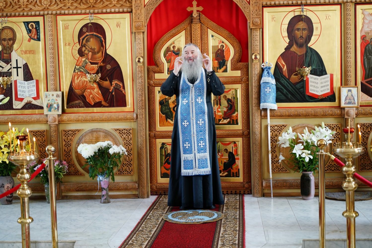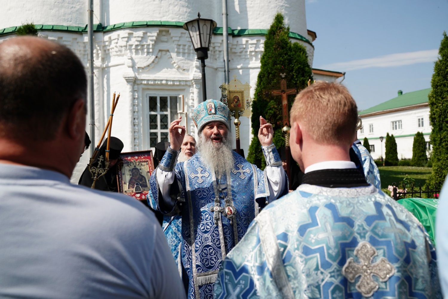 Пусть каждый из нас сегодня присоединится к сонму всех святых Церкви Русской там, на Небесах, и к Церкви земной, и прославит Пречистую за Ее бесчисленные благодеяния. Пусть Царица Небесная умиротворит Святую Русь и дарует нам Свой державный покров, поможет нам сохранить благодать Господню в этом порабощенном безумными сатанинскими законами мире».