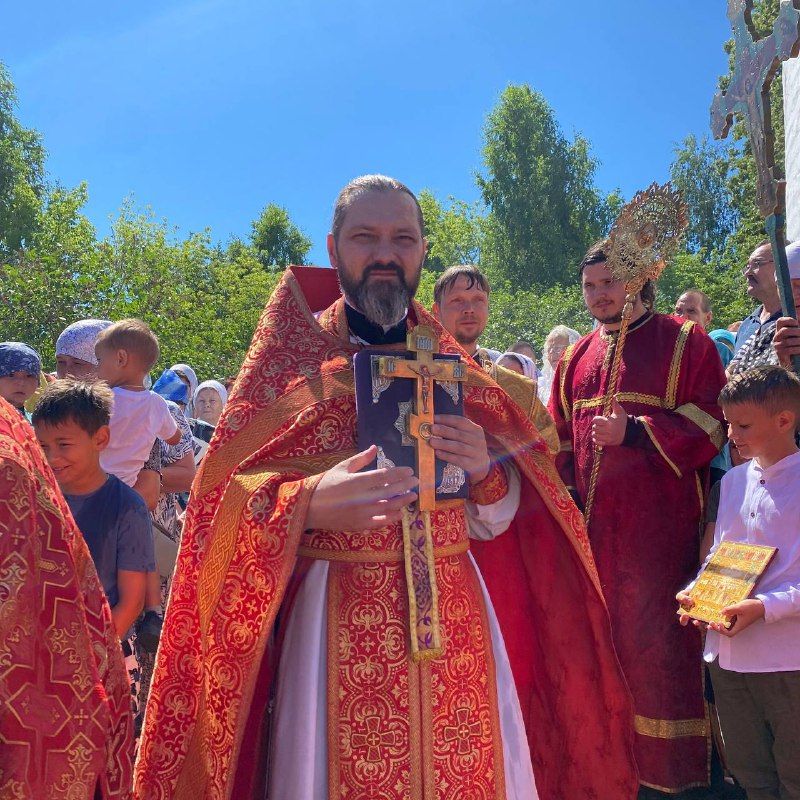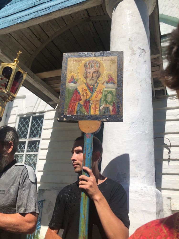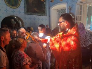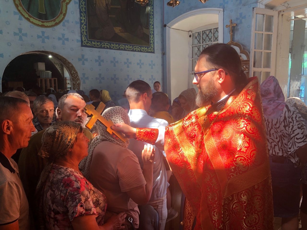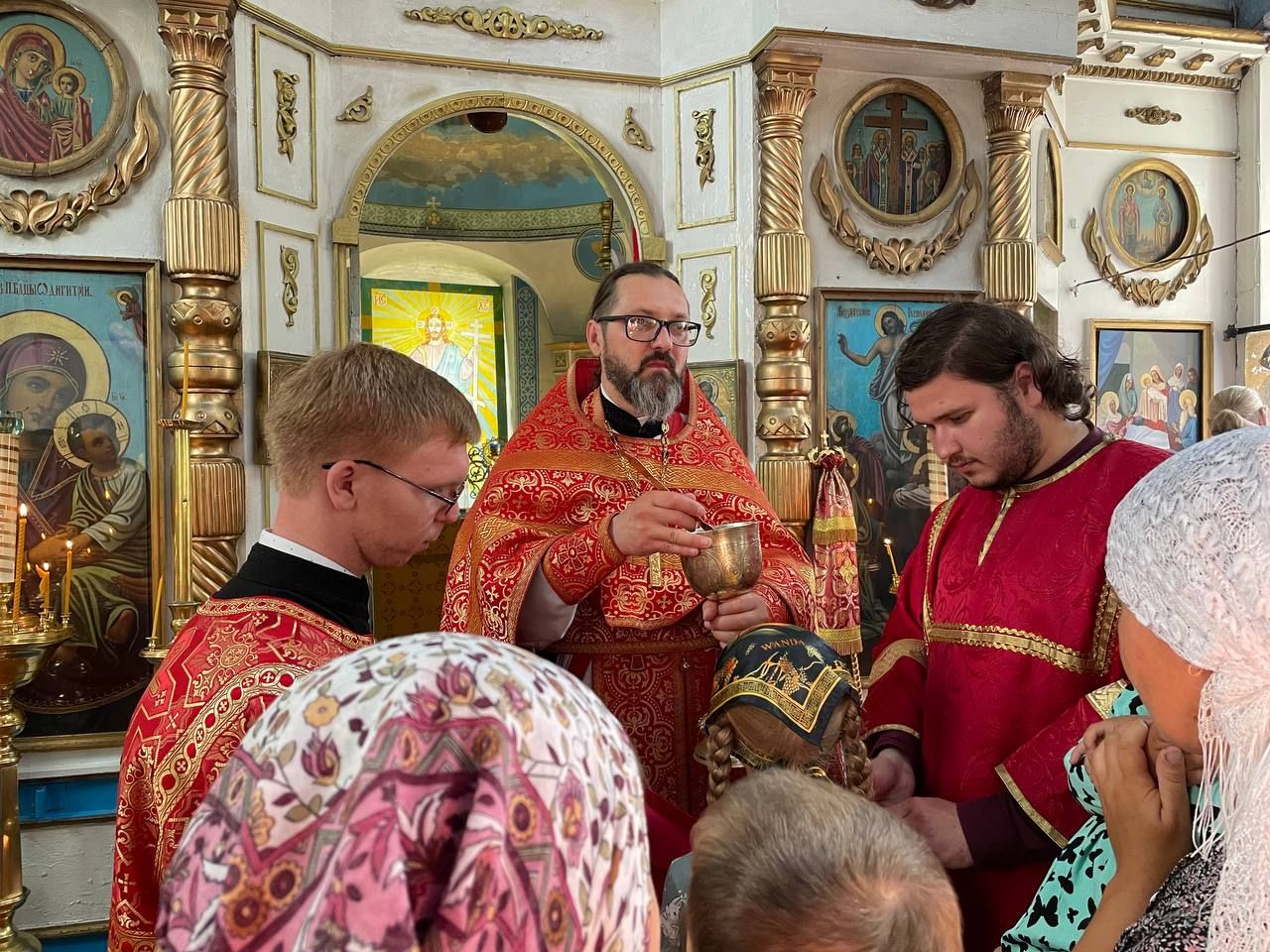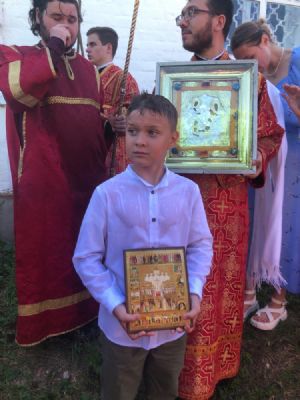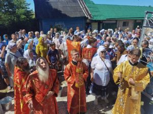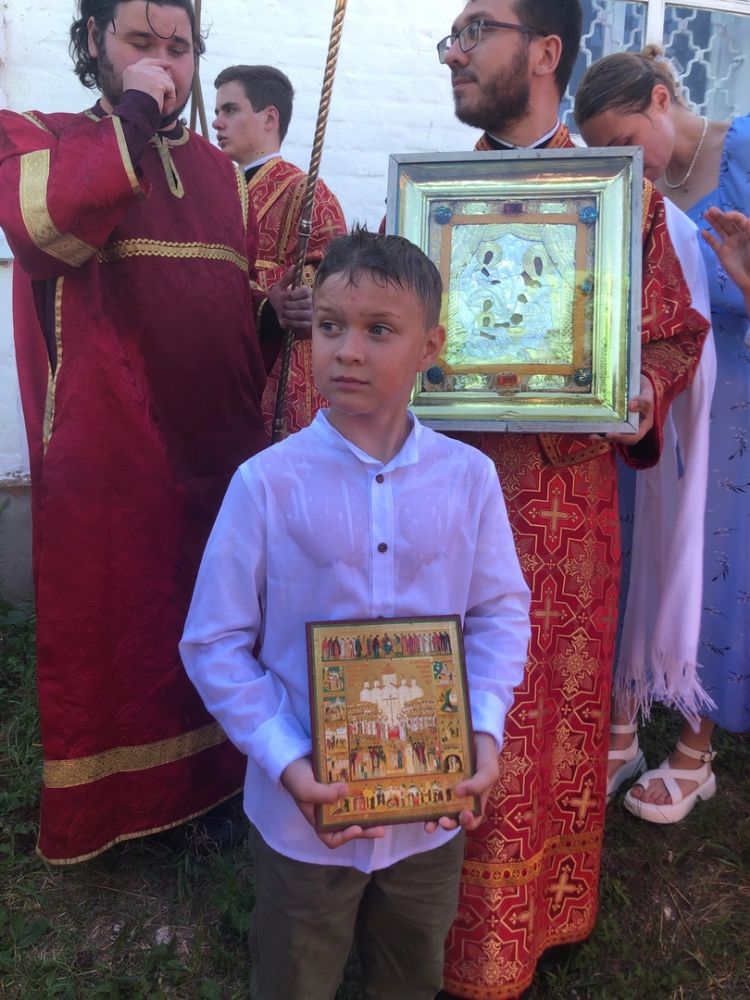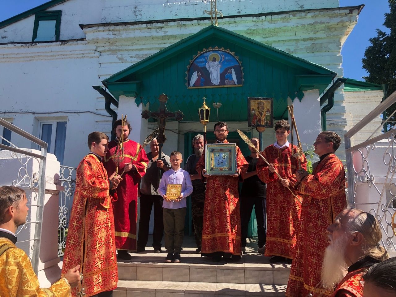 После Литургии по традиции престольных праздников прошел крестный ход вокруг храма со чтением Евангелия и кроплением святой водой.