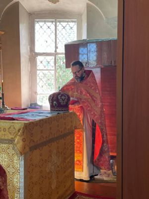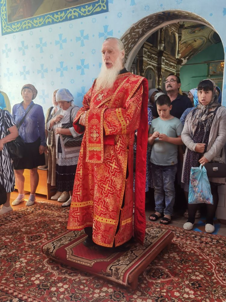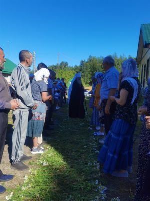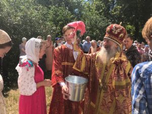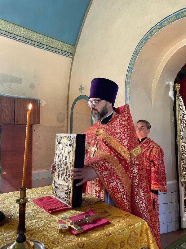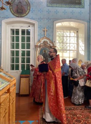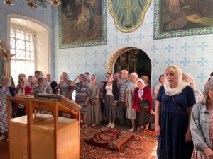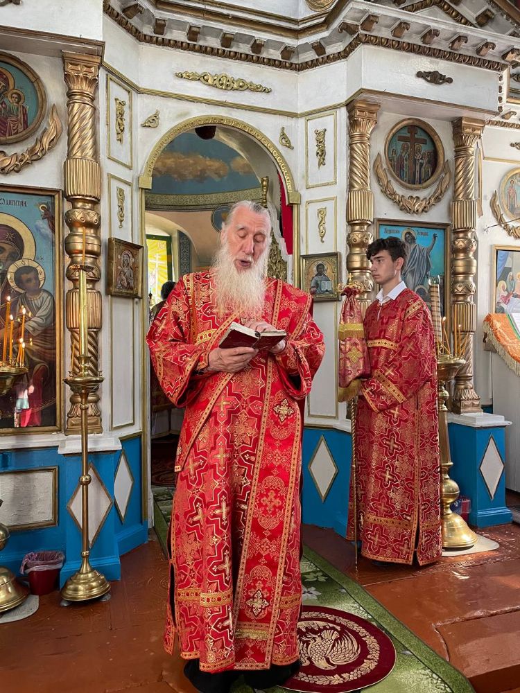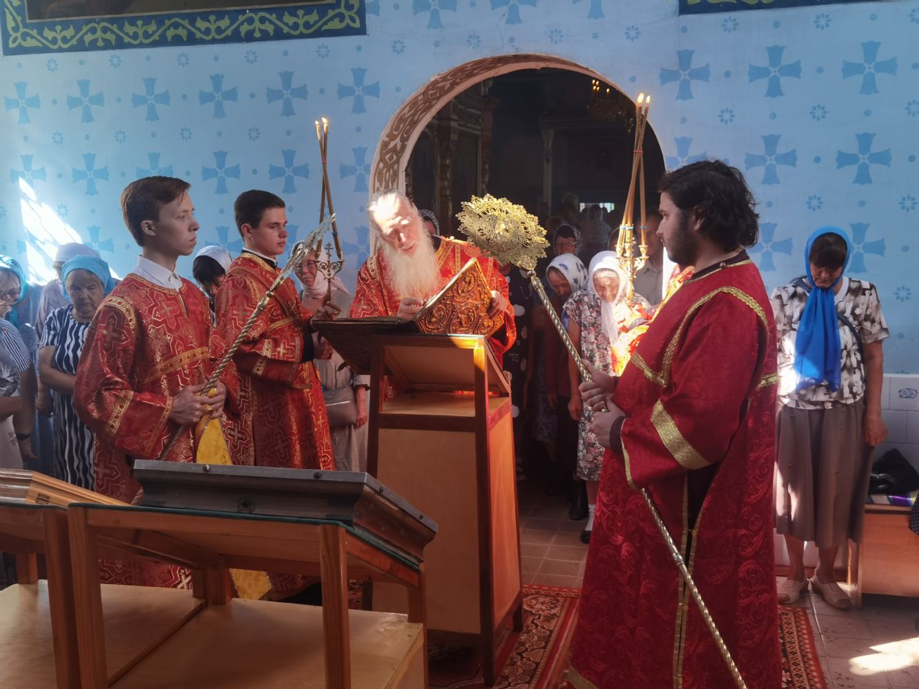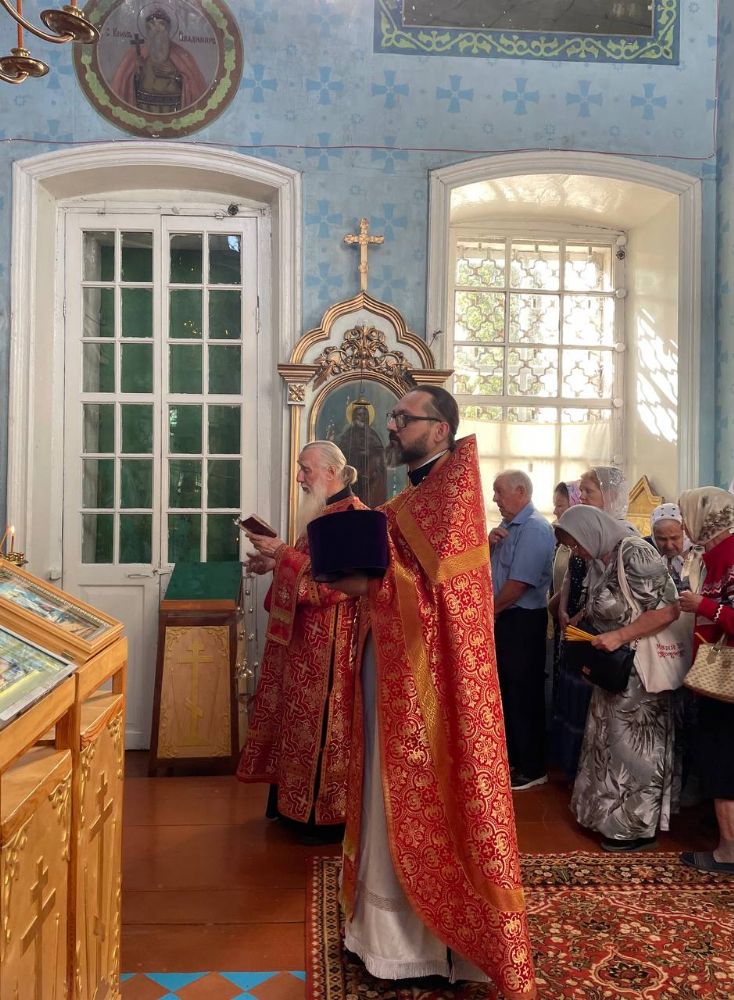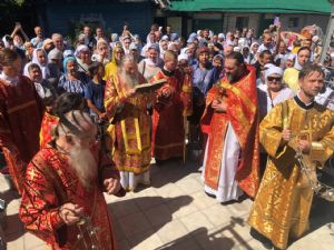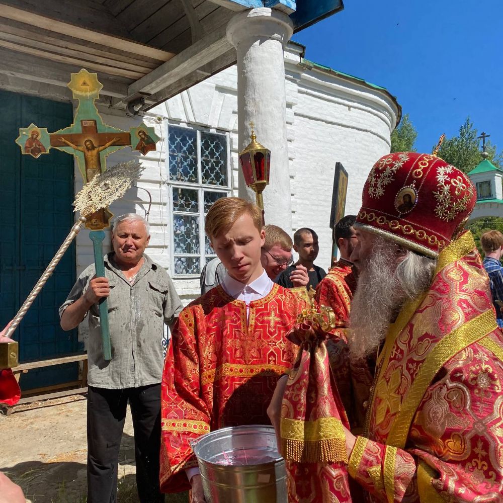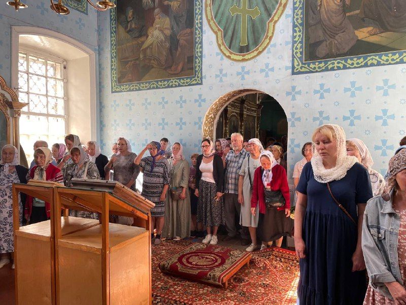 После Литургии по традиции престольных праздников прошел крестный ход вокруг храма со чтением Евангелия и кроплением святой водой.