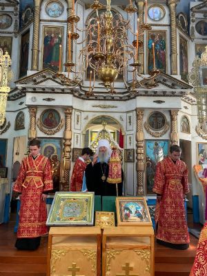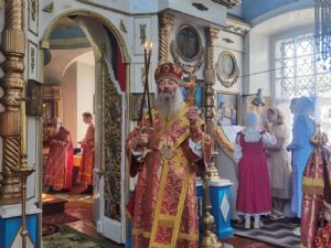 Обращаясь к собравшимся с архипастырским словом, владыка поздравил всех с престольным праздником и подчеркнул, что в нынешнем году день Рождества Пророка, Предтечи и Крестителя Господня Иоанна совпал с праздником Всех святых, в земле Российской просиявших.
