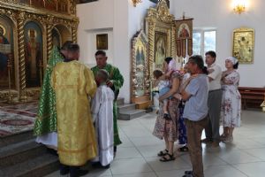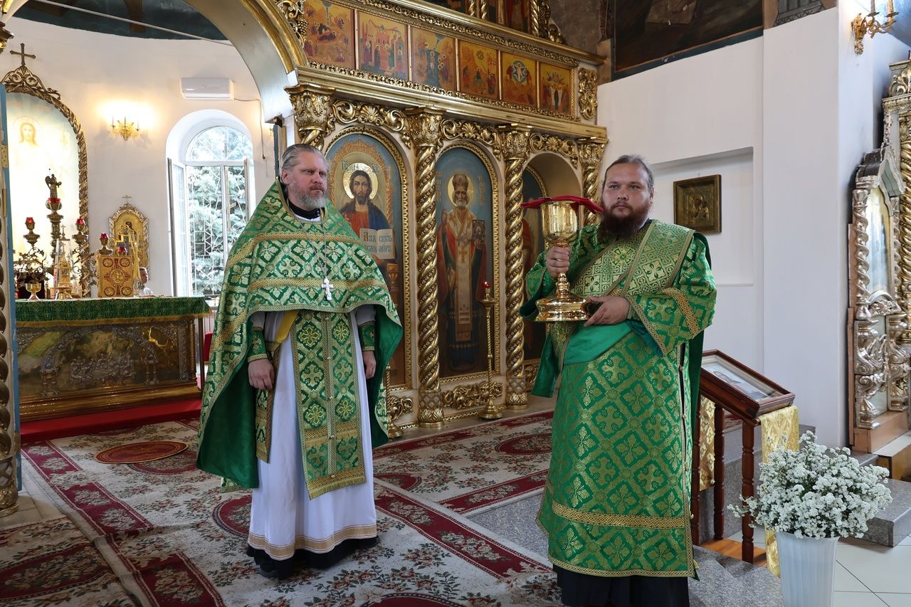 Его Преосвященству сослужили клирики собора иерей Сергий Першаков, диакон Иоанн Захаров и диакон Герман Михайлов. Песнопения исполнял хор под руководством Елены Васильевой.