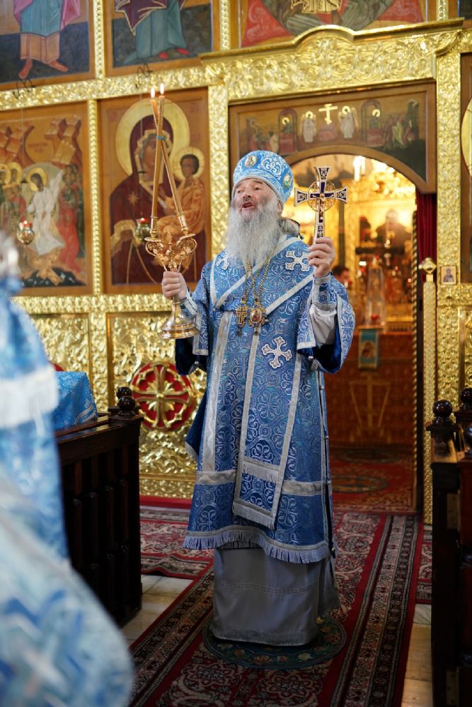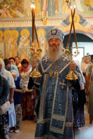 Обращаясь к собравшимся с проповедью, митрополит Иоанн напомнил историю явления празднуемого ныне Тихвинского образа Пресвятой Богородицы, написанного, по преданию, апостолом Лукой. В Константинополе для этого образа был построен Влахернский храм, но после принятия унии икона исчезла из храма. А впоследствии явилась в сиянии на севере Святой Руси, близ современного города Тихвина, где была построена обитель в честь Пречистой.