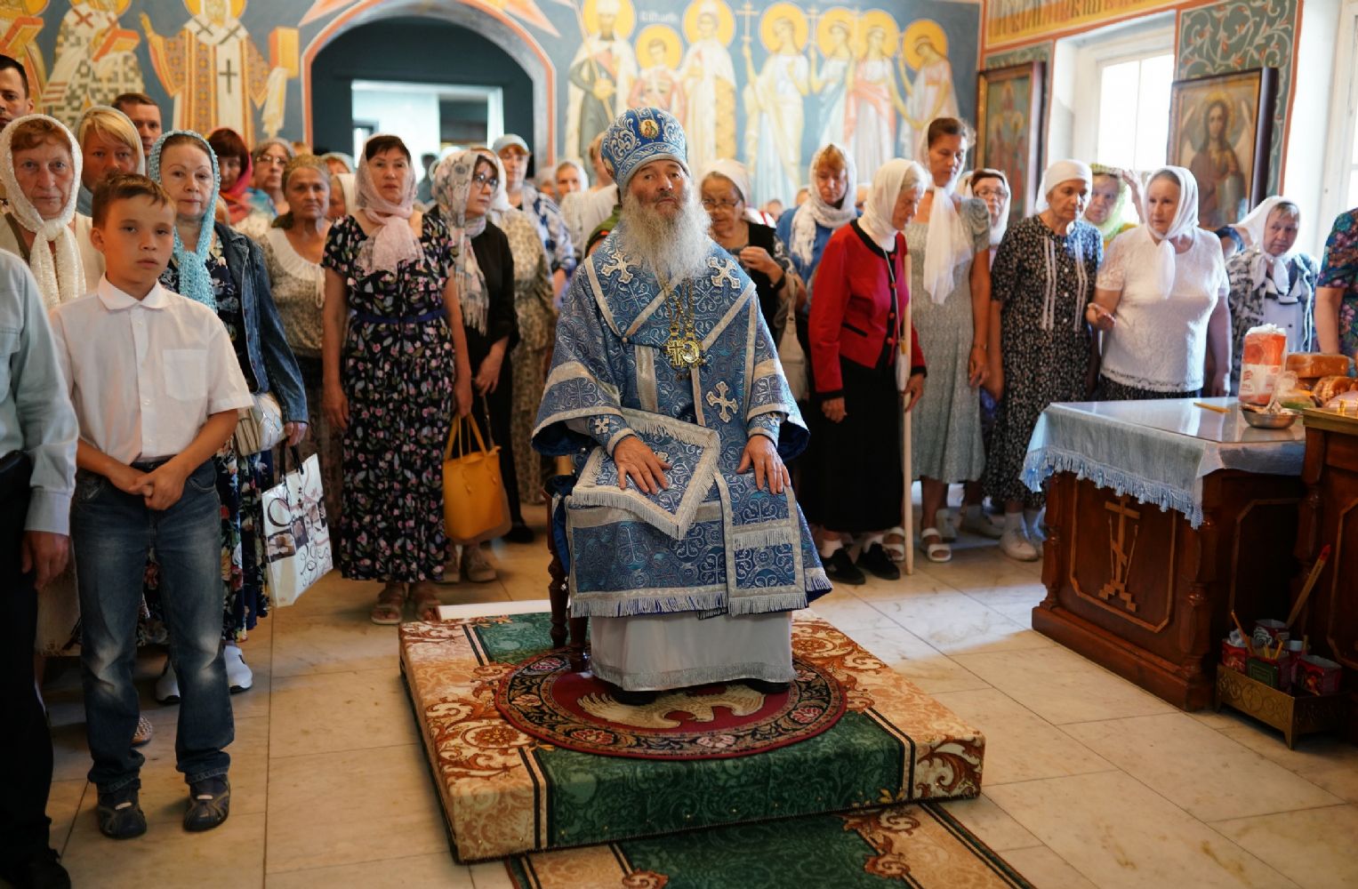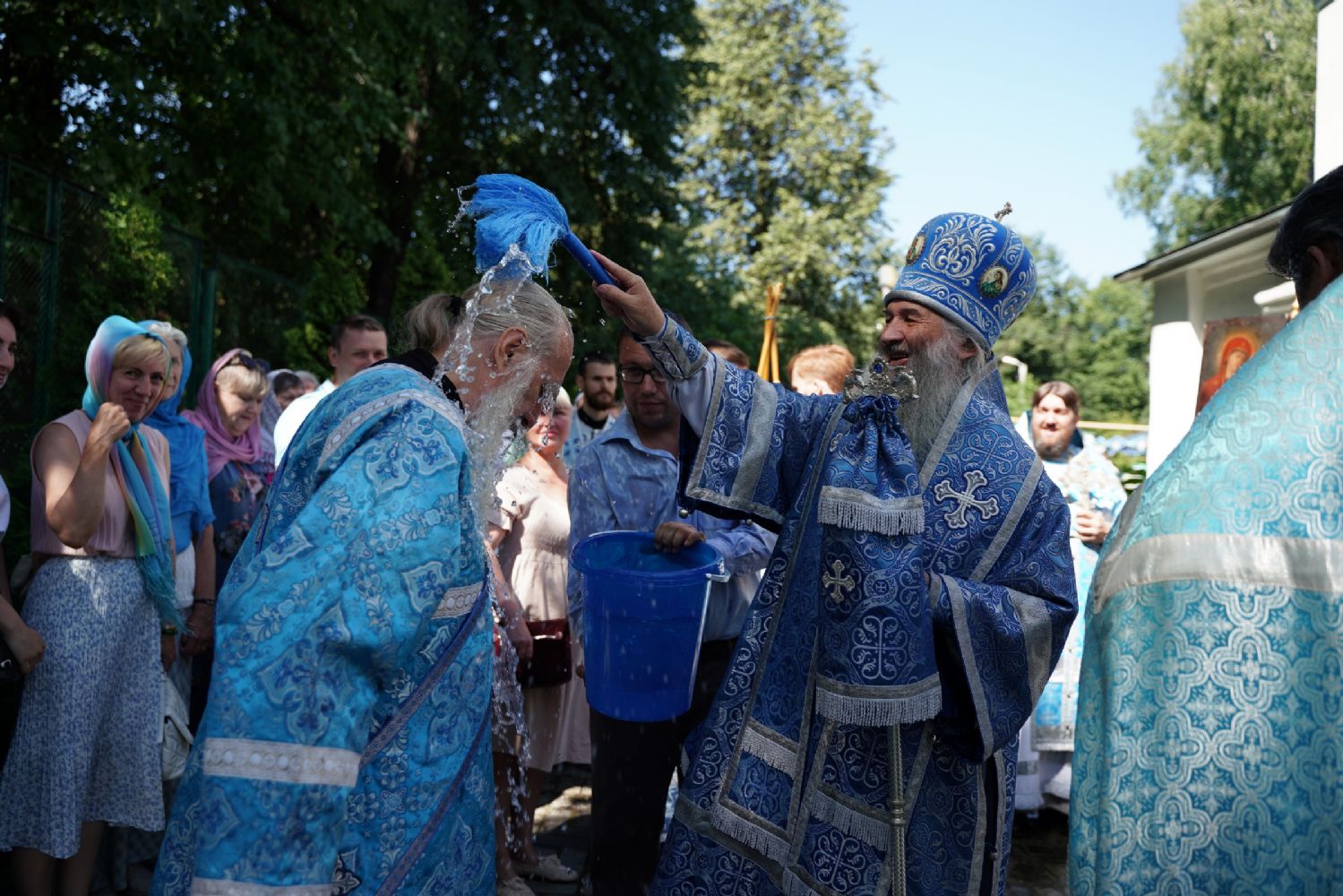 После Божественной литургии в ознаменование престольного праздника вокруг храма был совершен крестный ход со чтением Евангелия и кроплением святой водой.