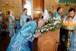 10 июля, накануне праздника, митрополит Йошкар-Олинский и Марийский Иоанн возглавил в домовом храме вечерние богослужения. 9-й час, по афонской традиции, читался в притворе храма. Затем было совершено малое повечерие с пением акафиста Богородице перед Ее иконой «Троеручица».