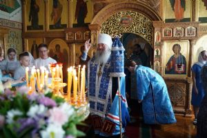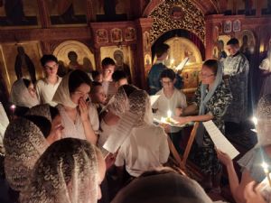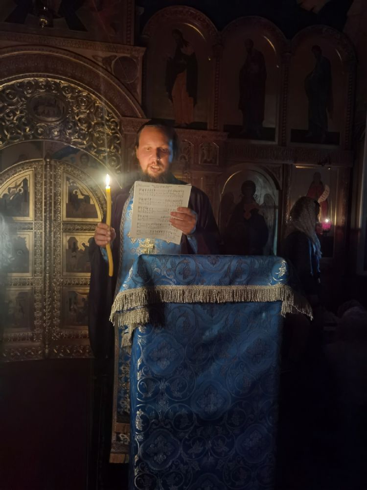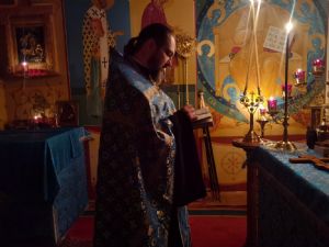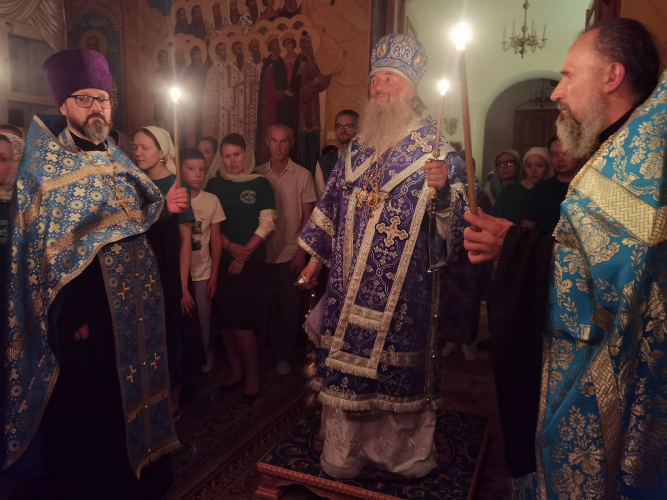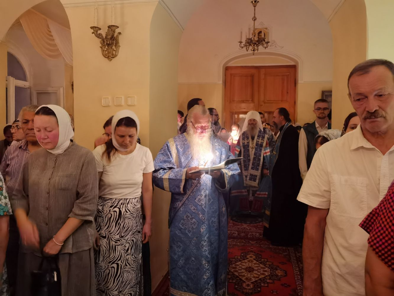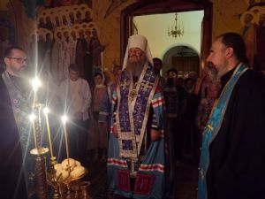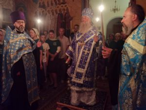 В 21 час вечера владыка возглавил всенощное бдение по афонскому уставу с пением многих частей службы на греческом языке. К сослужащим священникам добавился клирик храма иконы Божией Матери "Всех скорбящих Радость" г. Йошкар-Олы иерей Игорь Коваль.