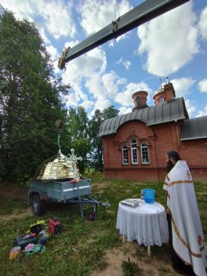 10 июля у храма Нерукотворного Образа Спасителя в селе Цибикнур Медведевского района состоялось освящение и установка купола с крестом на здание крестильни.