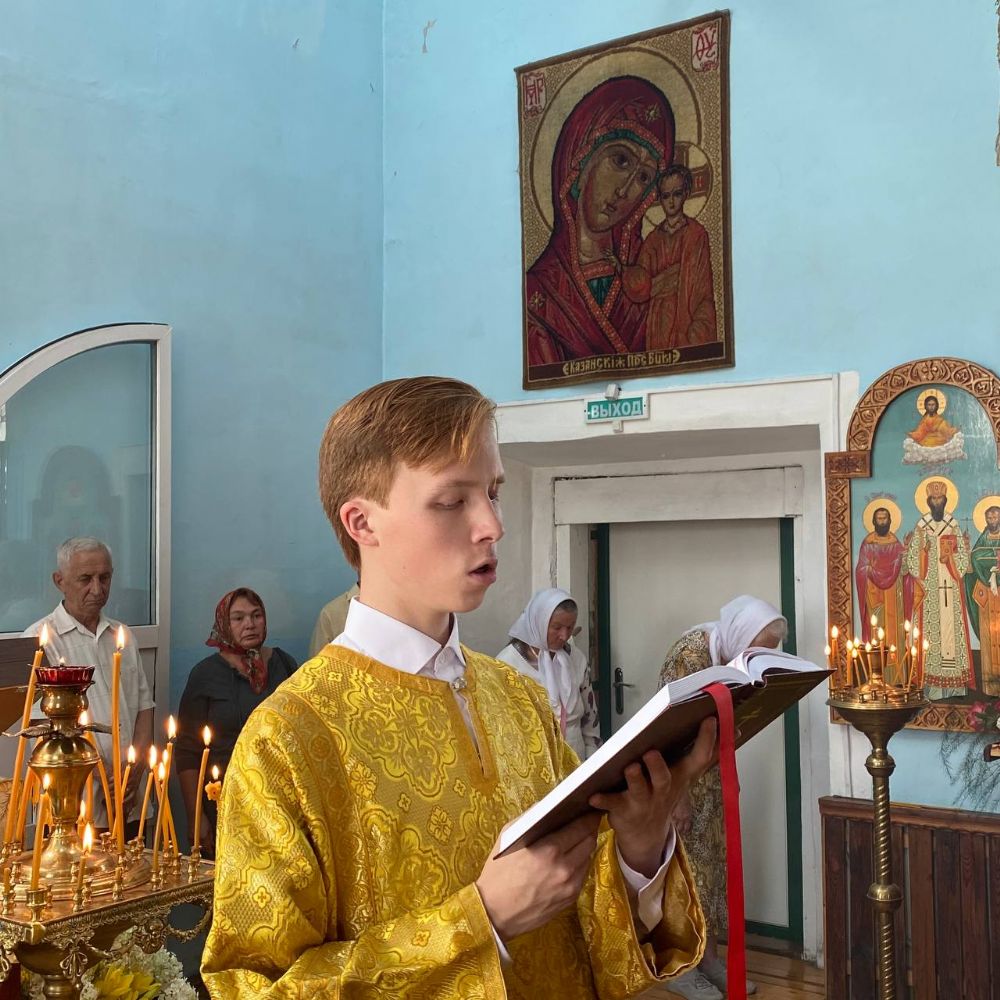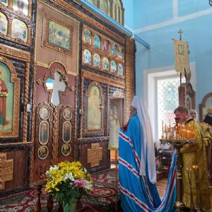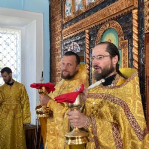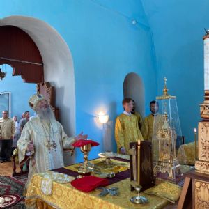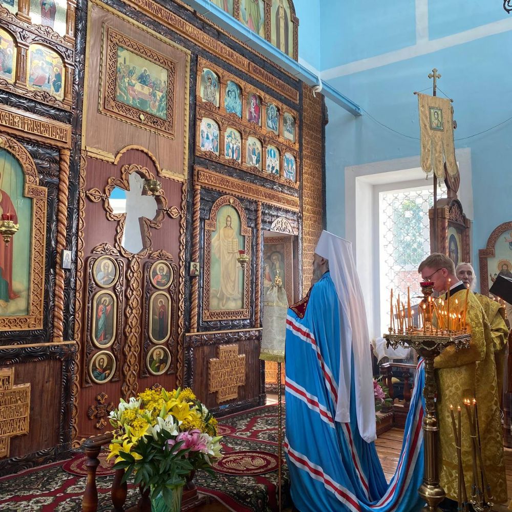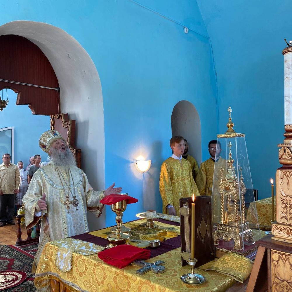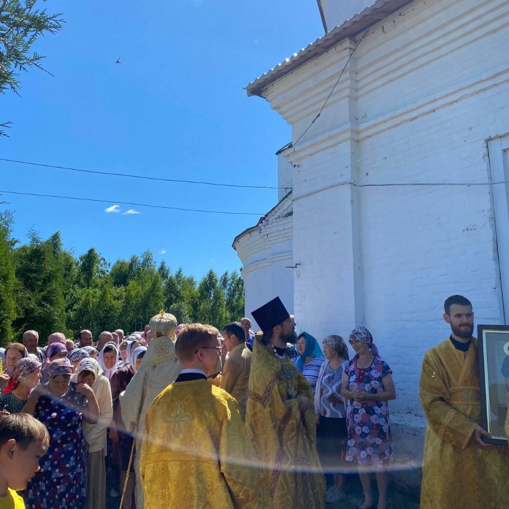Архипастырю сослужили настоятель храма иерей Григорий Михалев, настоятель храма с. Юксары иерей Игорь Лебедев и протодиакон Михаил Козловский. Песнопения исполнял хор храма.